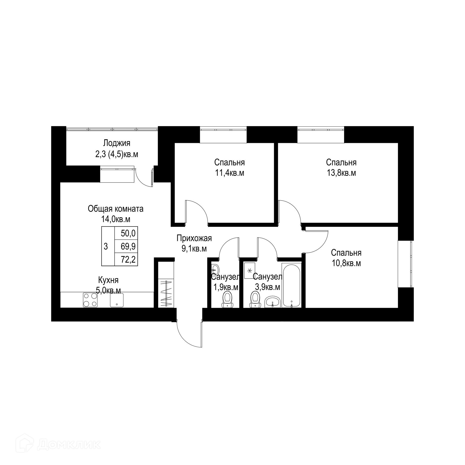 Площади квартир