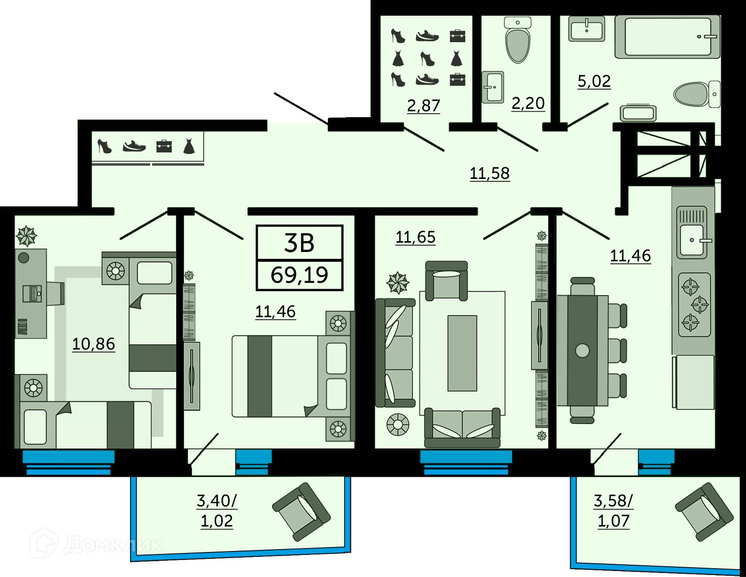 Площади квартир