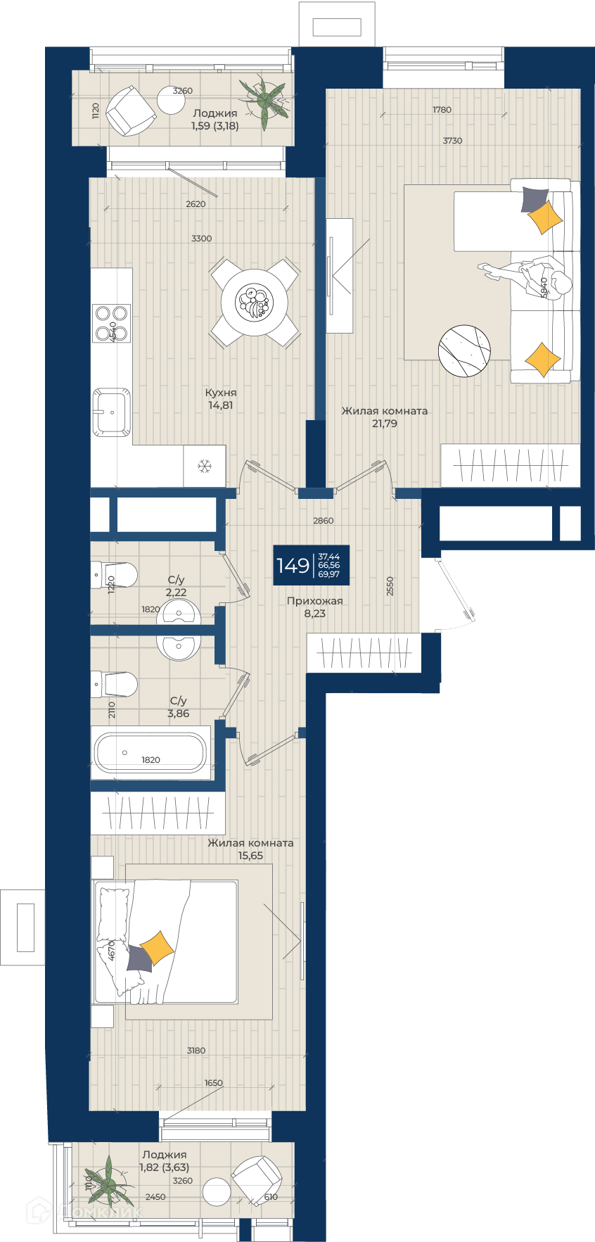 Площади квартир