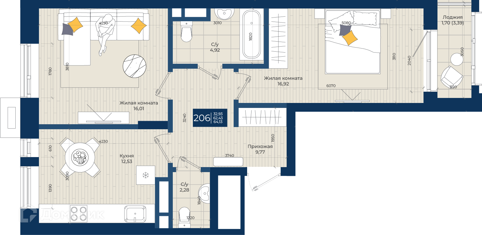 Площади квартир