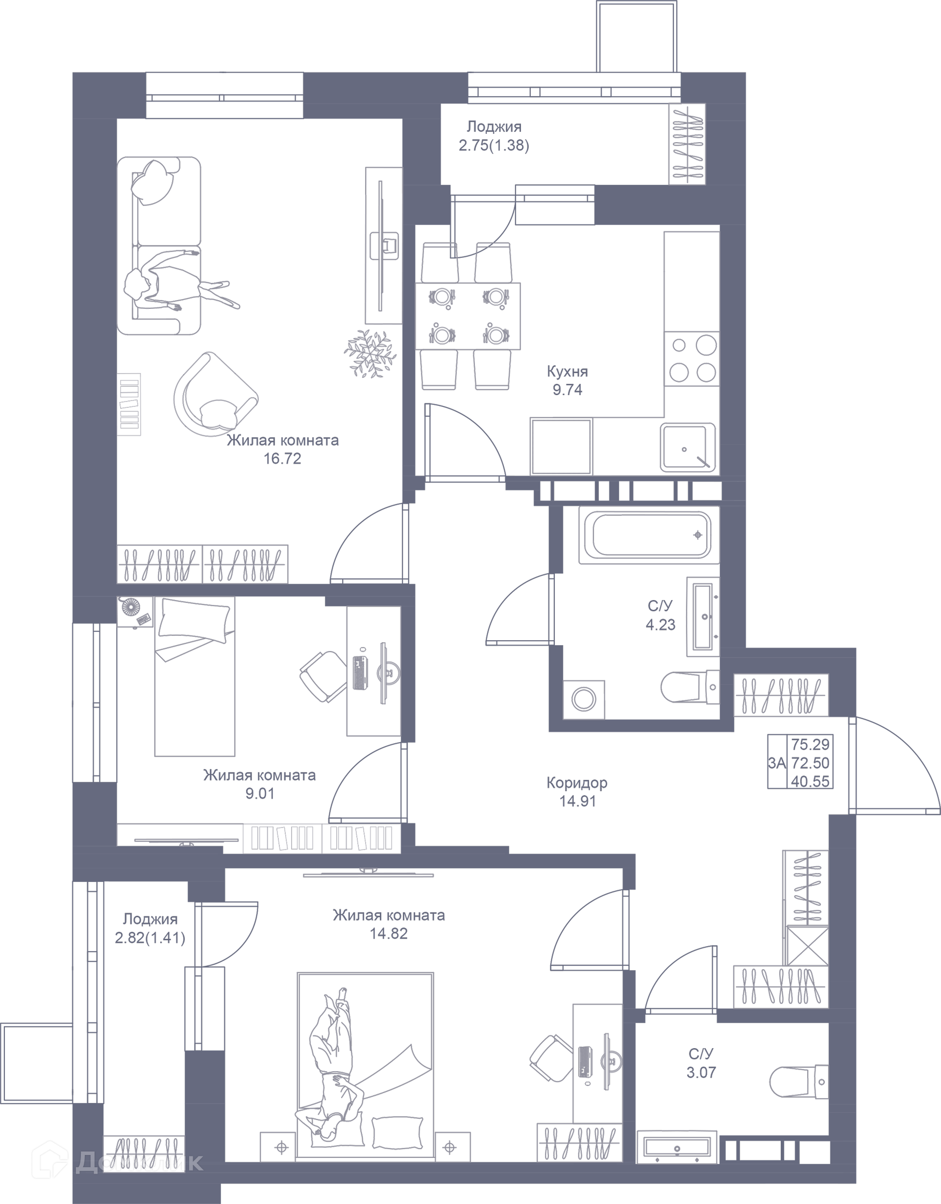 Площади квартир