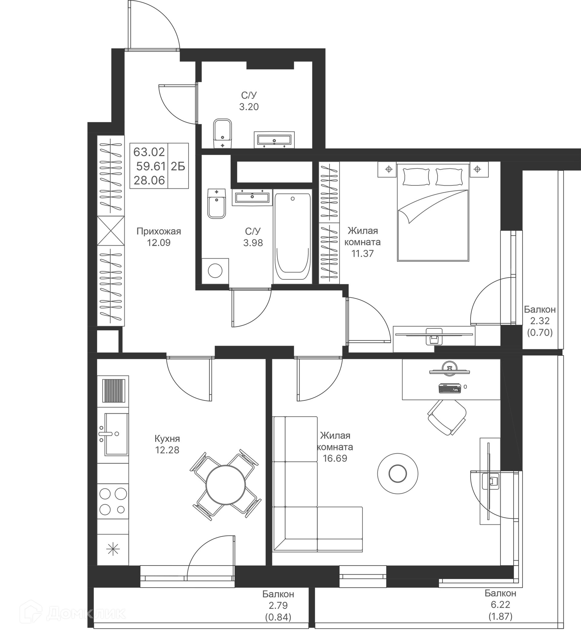 Площади квартир