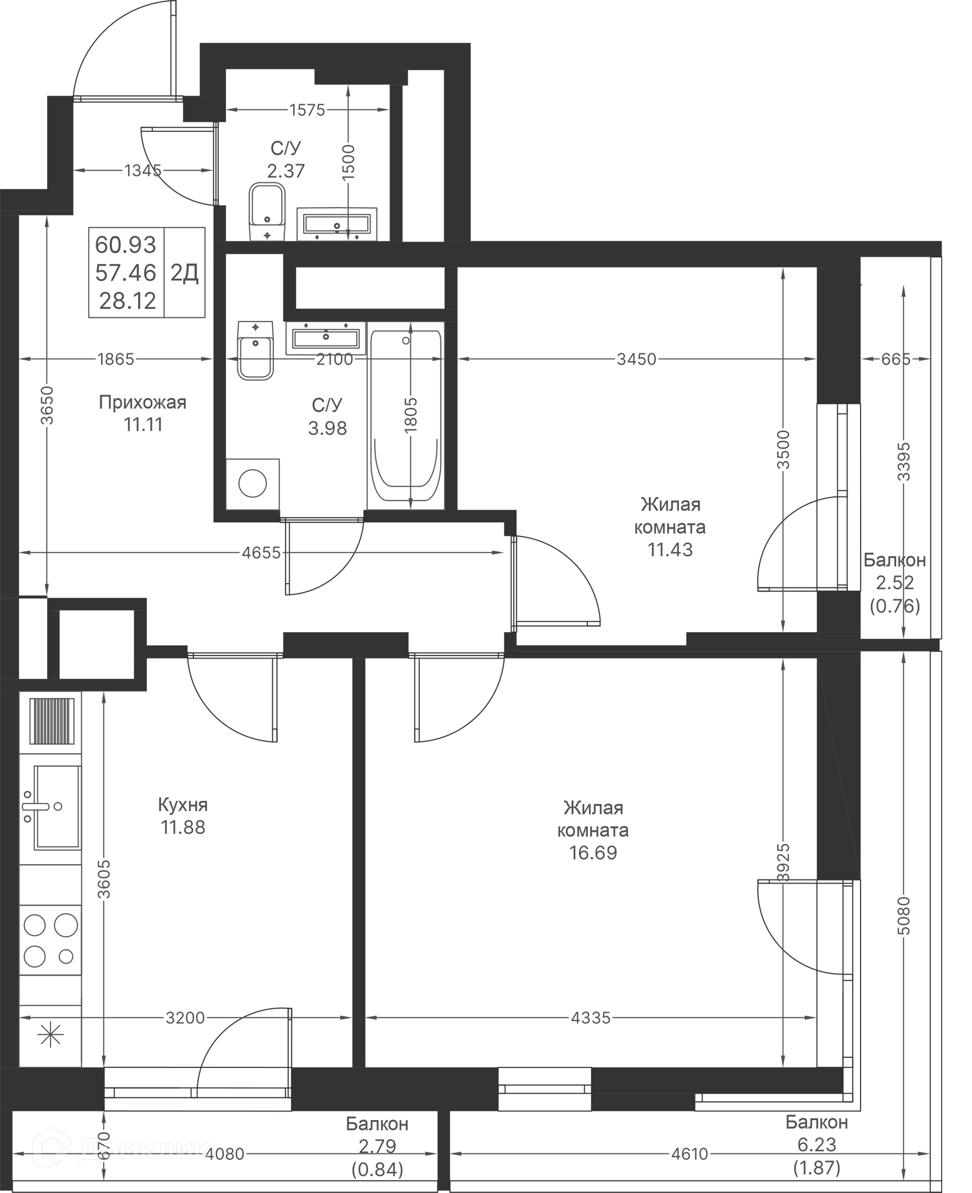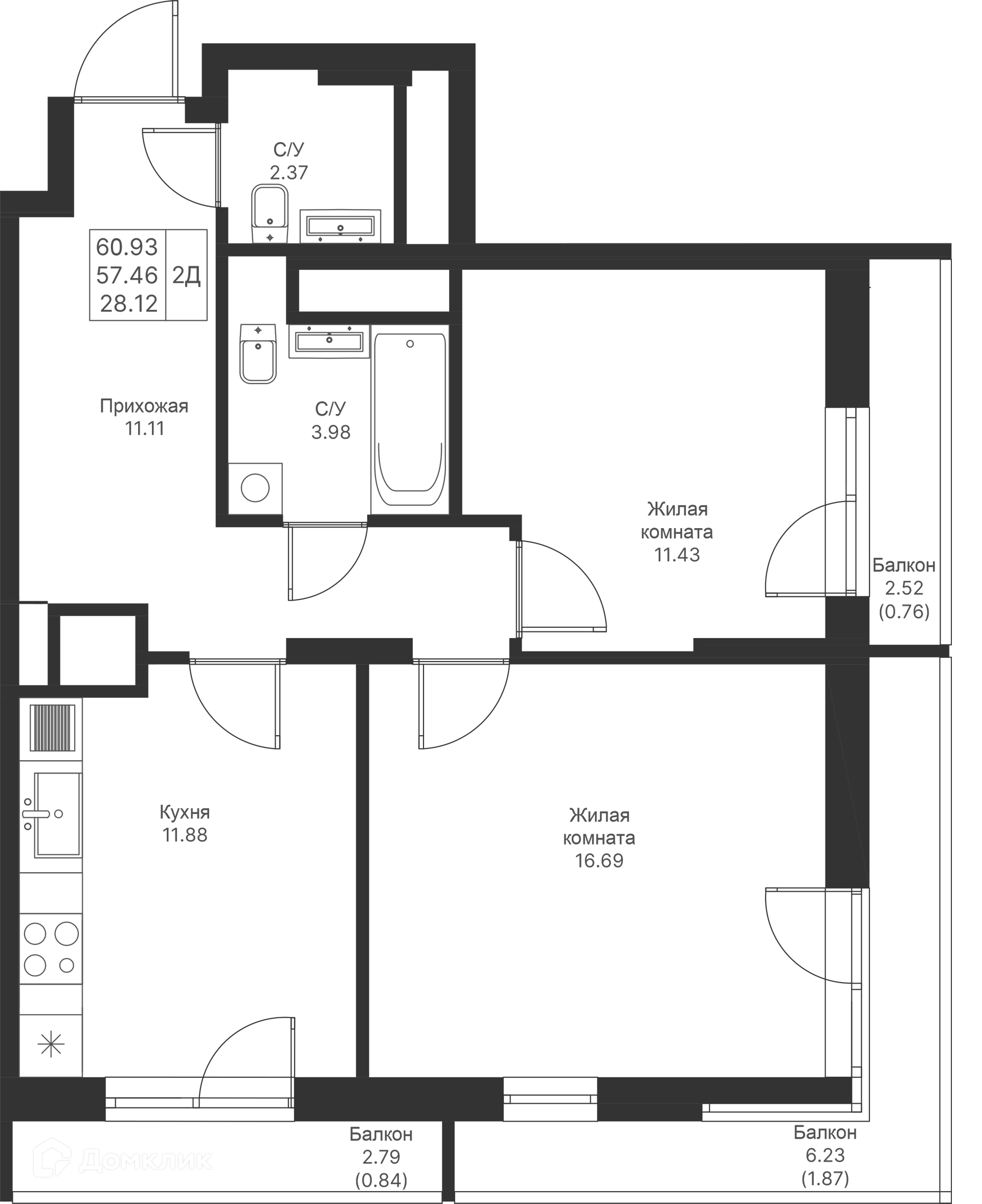 Площади квартир