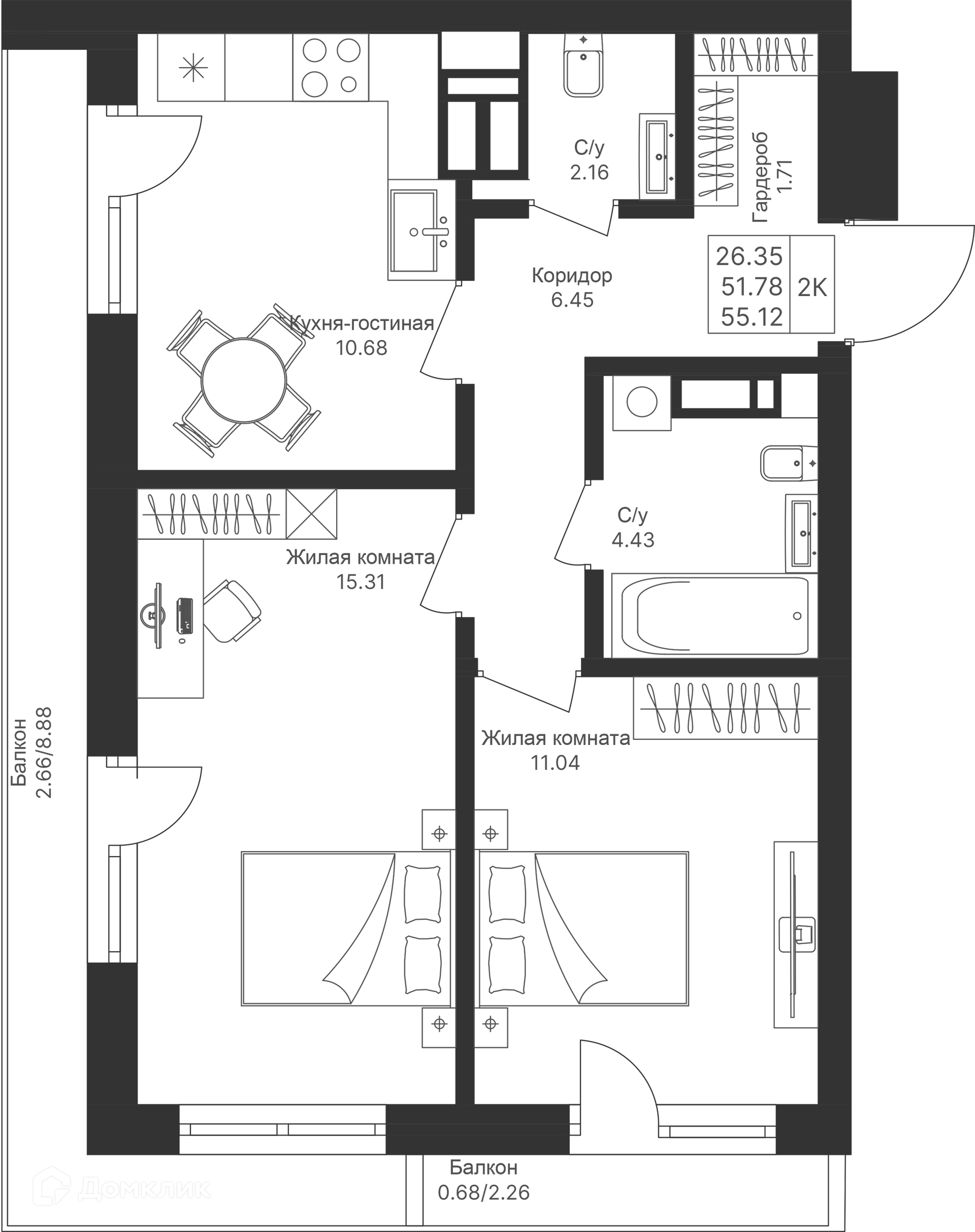 Площади квартир