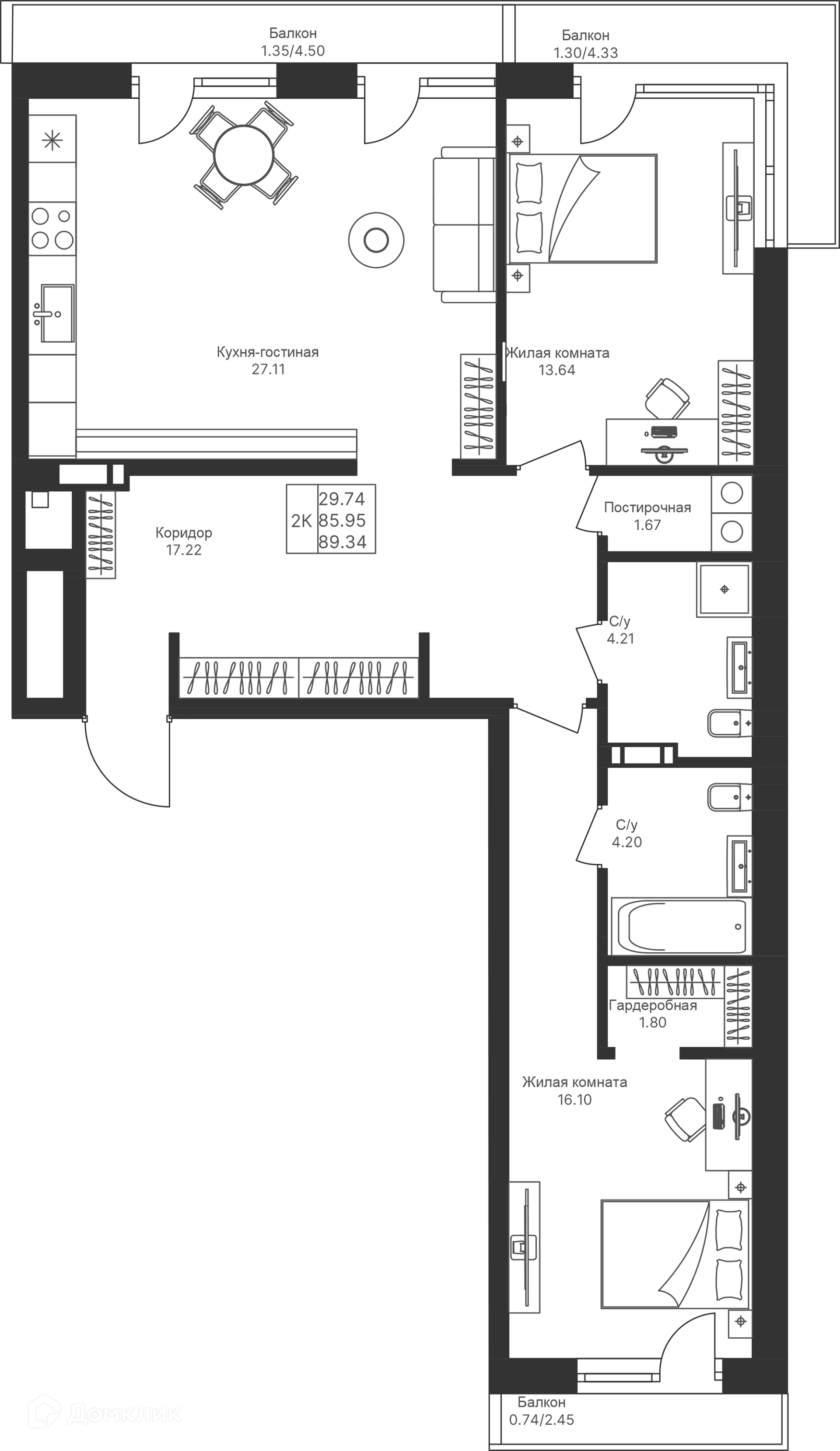 Площади квартир
