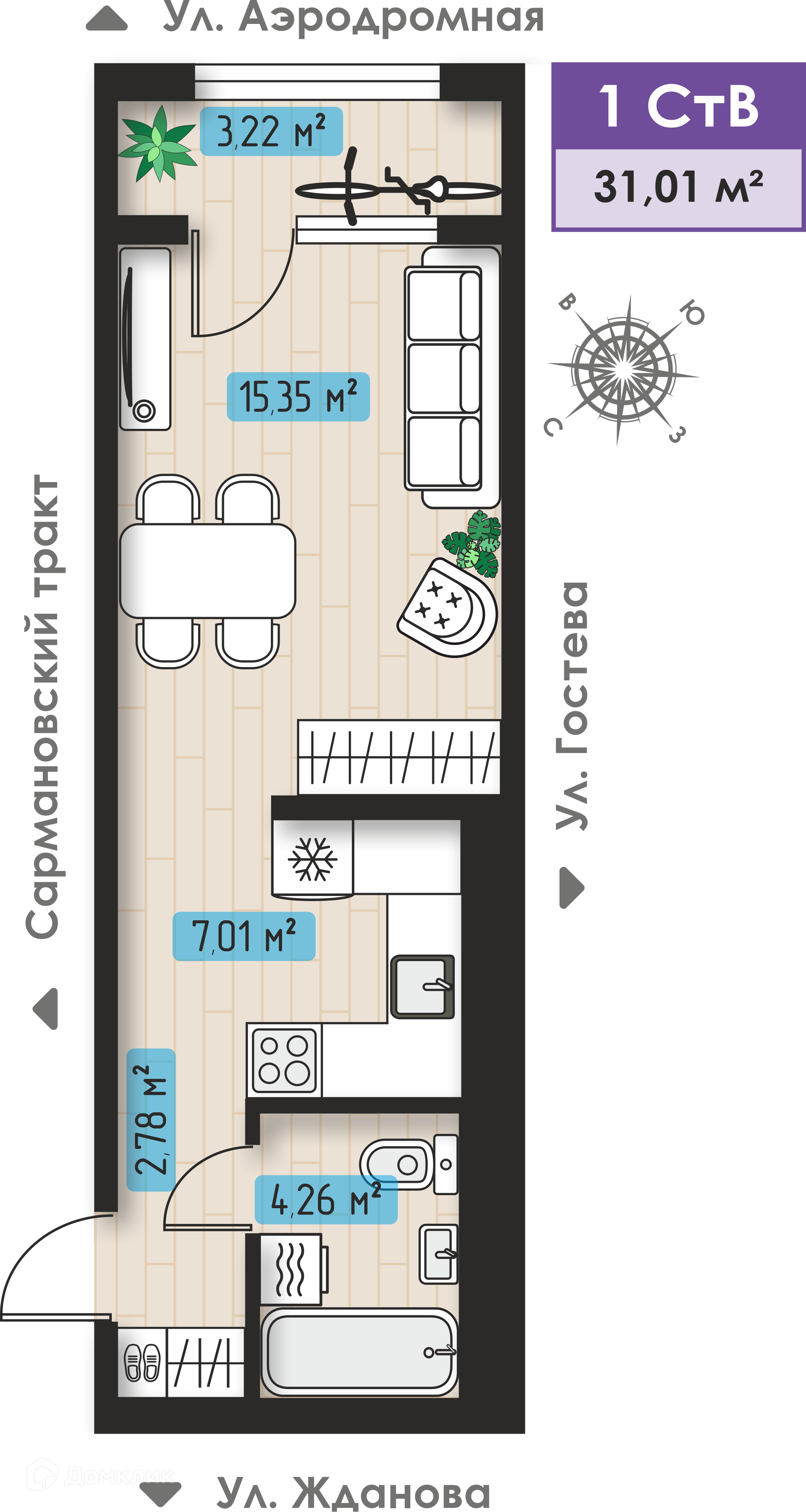- Общая площадь: 31.01 м²