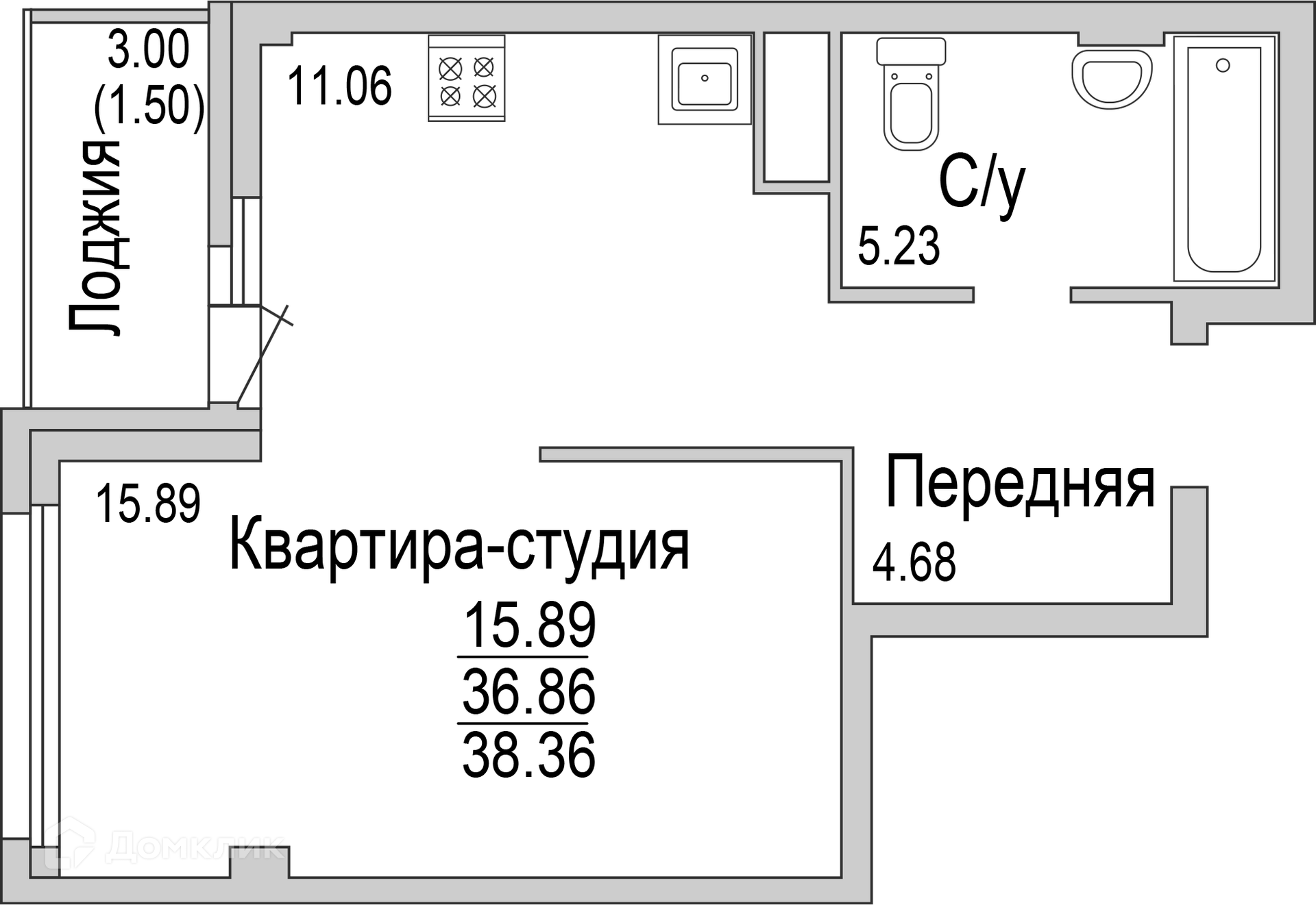 Планировка 3 комн. в ЖК "НА САРМАНОВСКОМ"