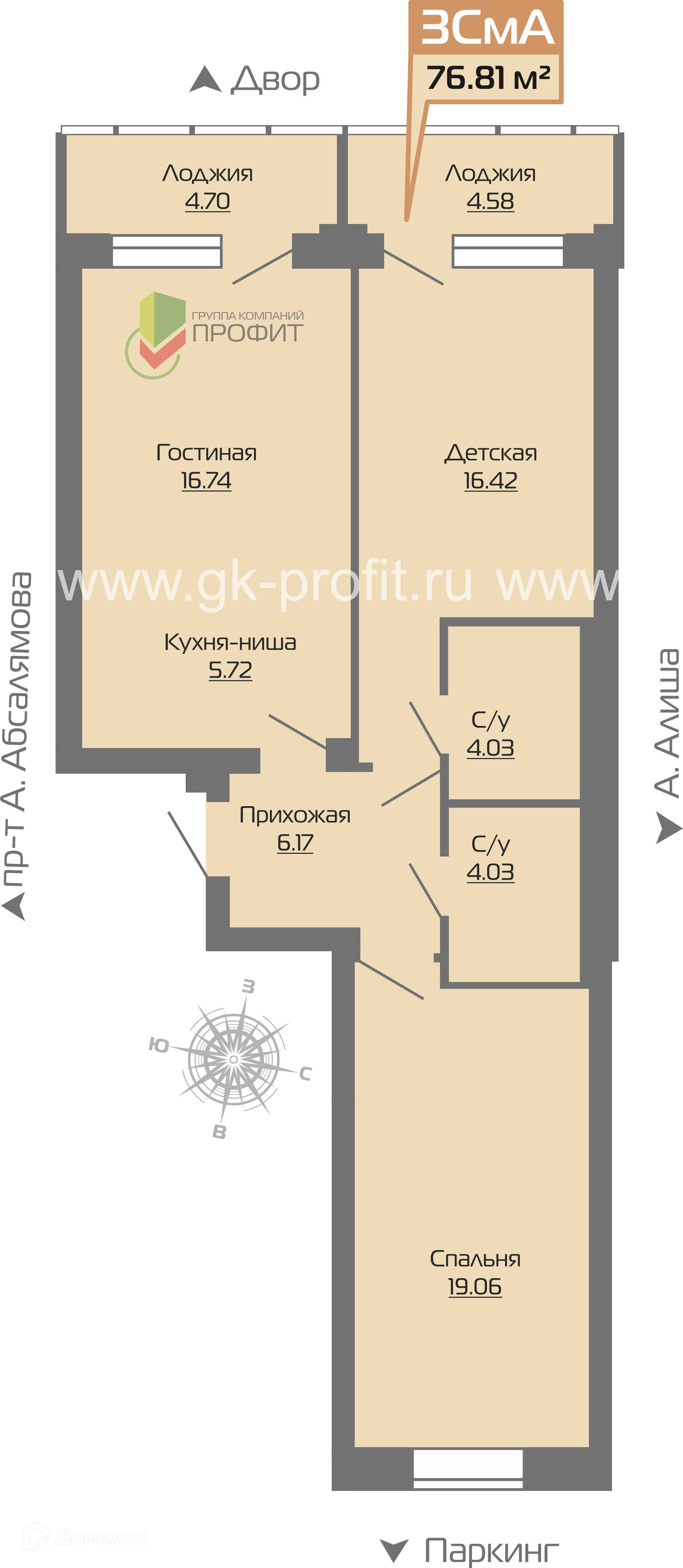 - Общая площадь: 76.81 м²