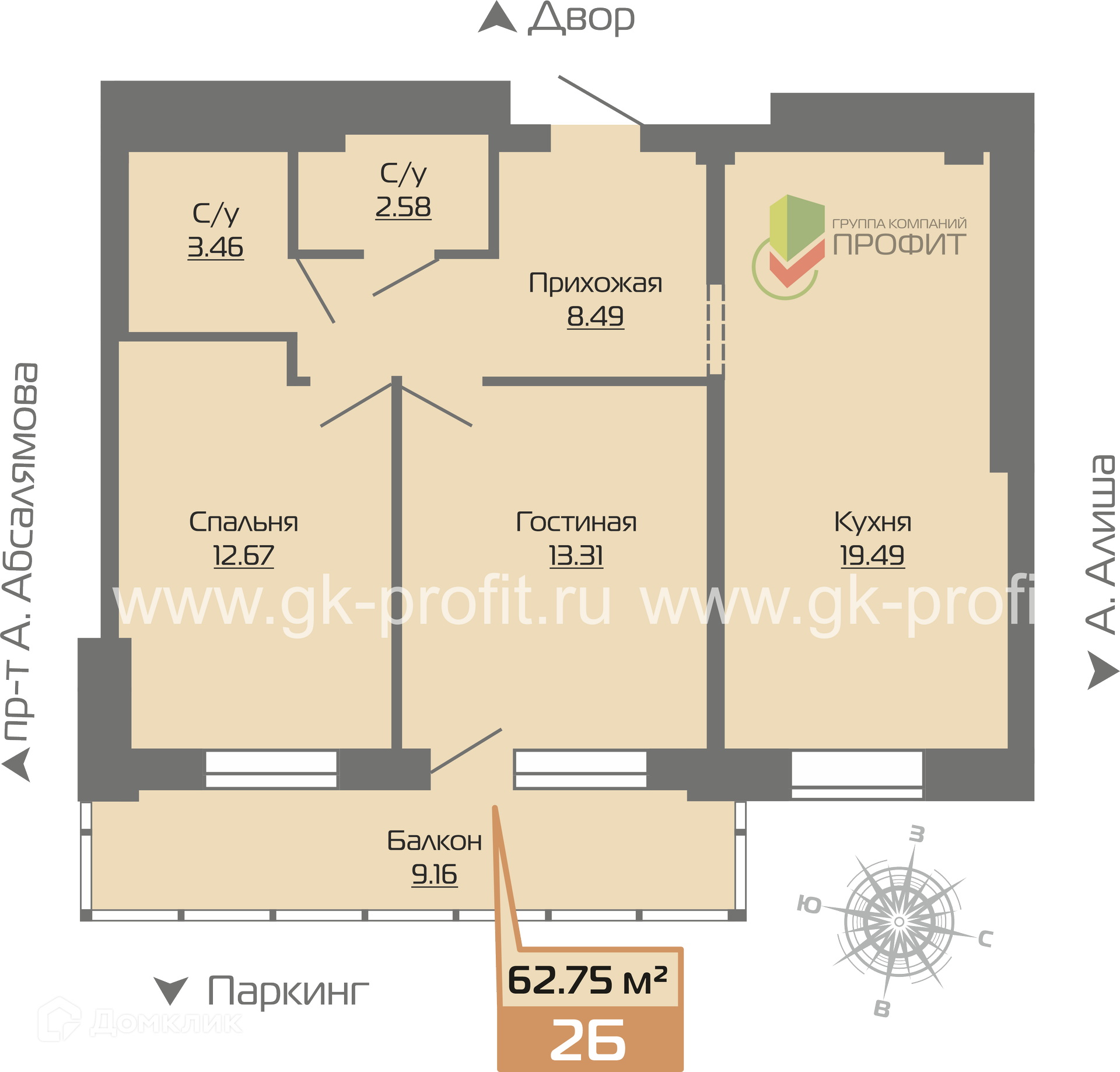 - ✅ Кухня: 19.49 м² — место для кулинарных шедевров.