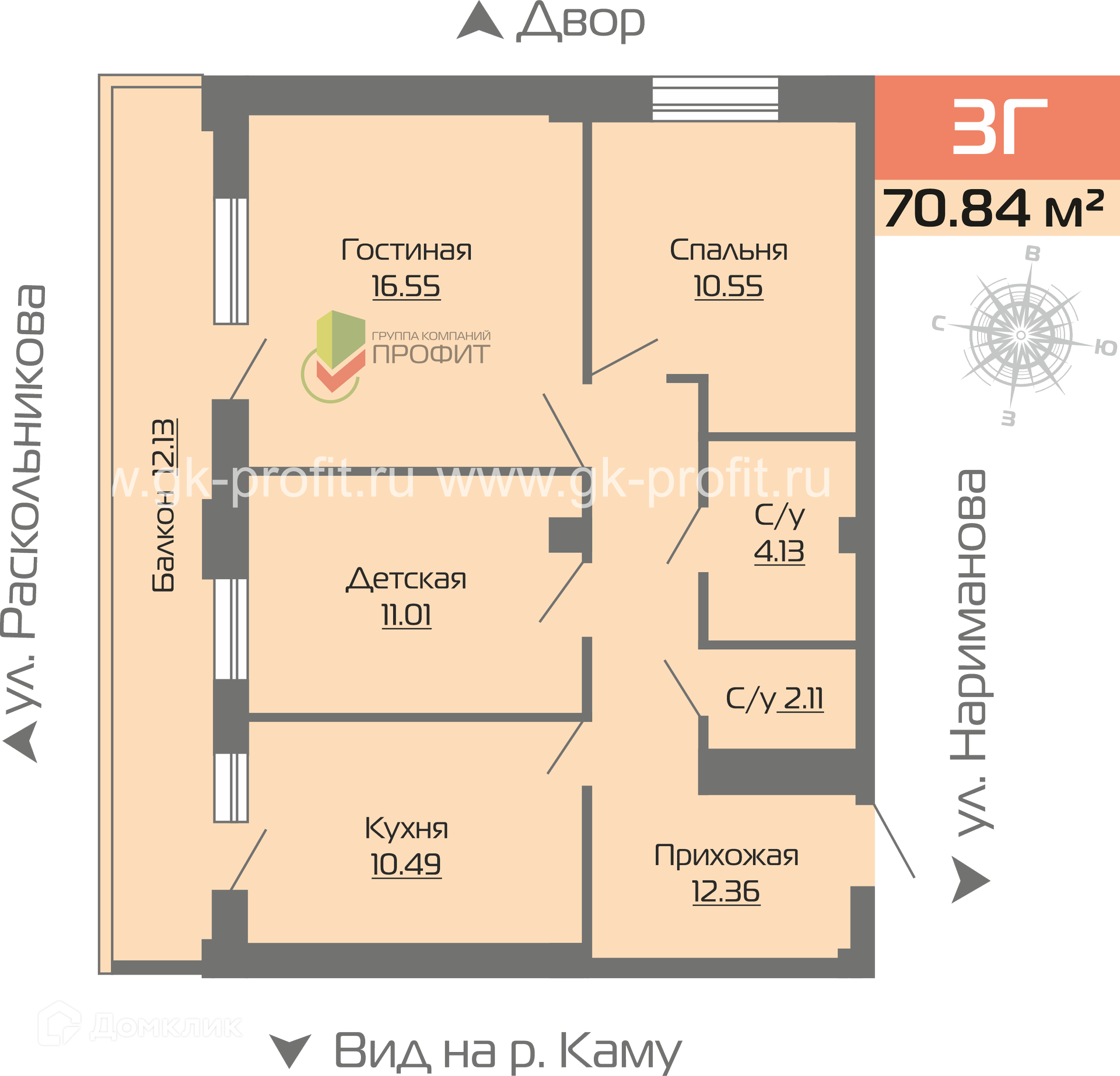 - Общая площадь: 70.84 м²