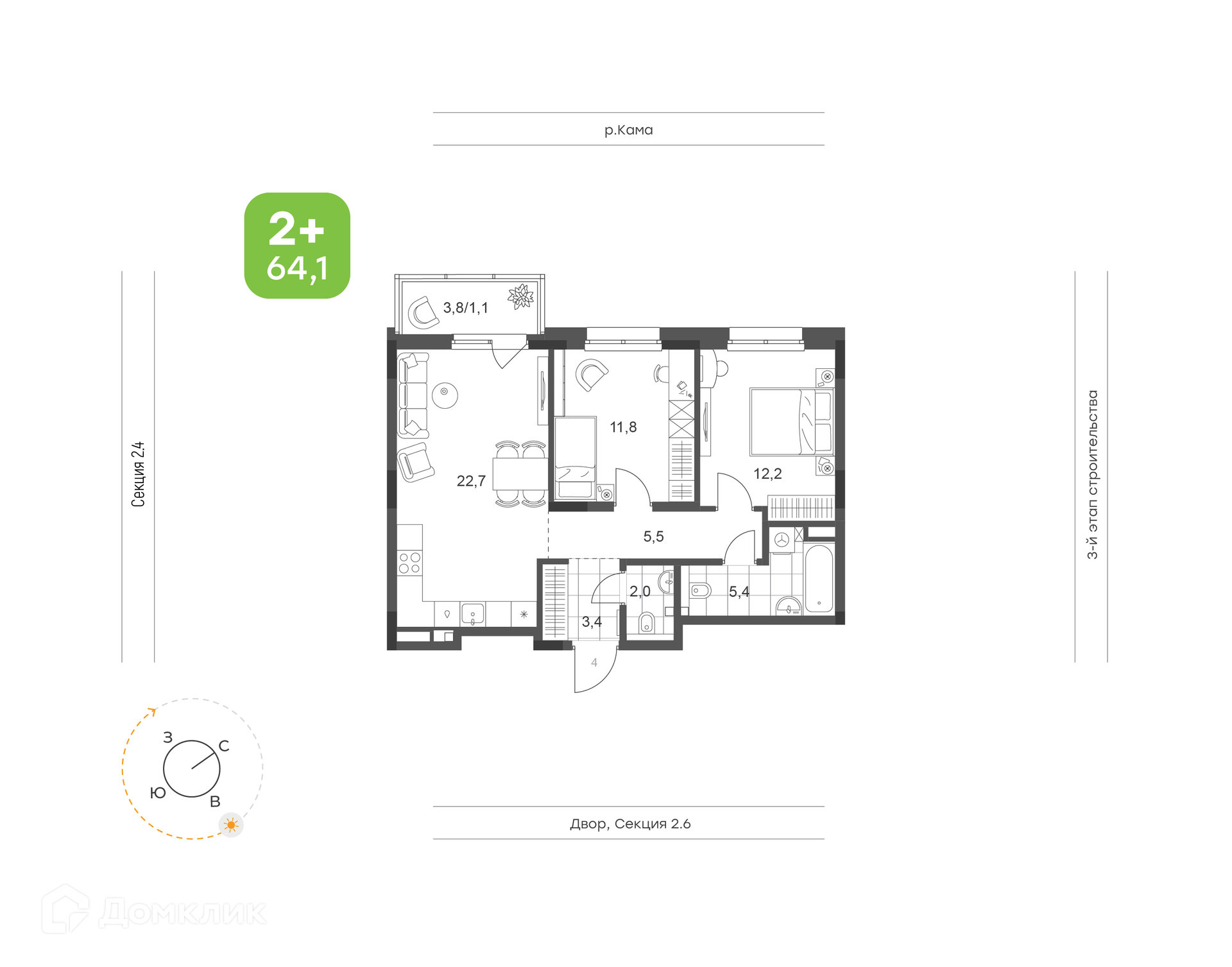 Доступна к покупке 2-комнатная квартира в новом жилом комплексе "ЖК Премьер-квартал на Набережной" 🏢. Квартира расположена на 2-м этаже 21-этажного дома. Отличный вариант для комфортной жизни.