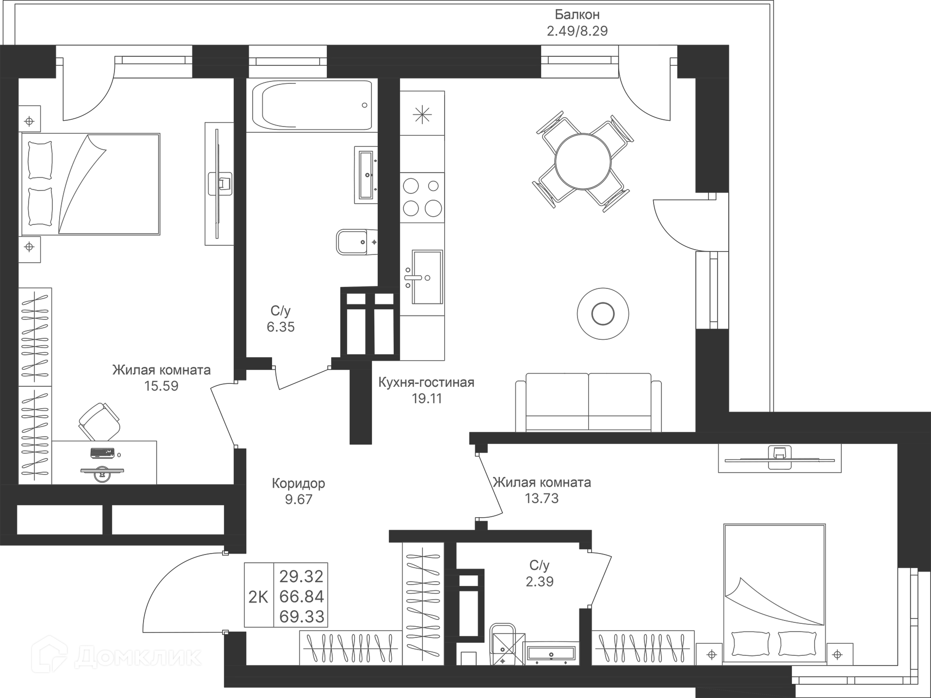 Площади квартир