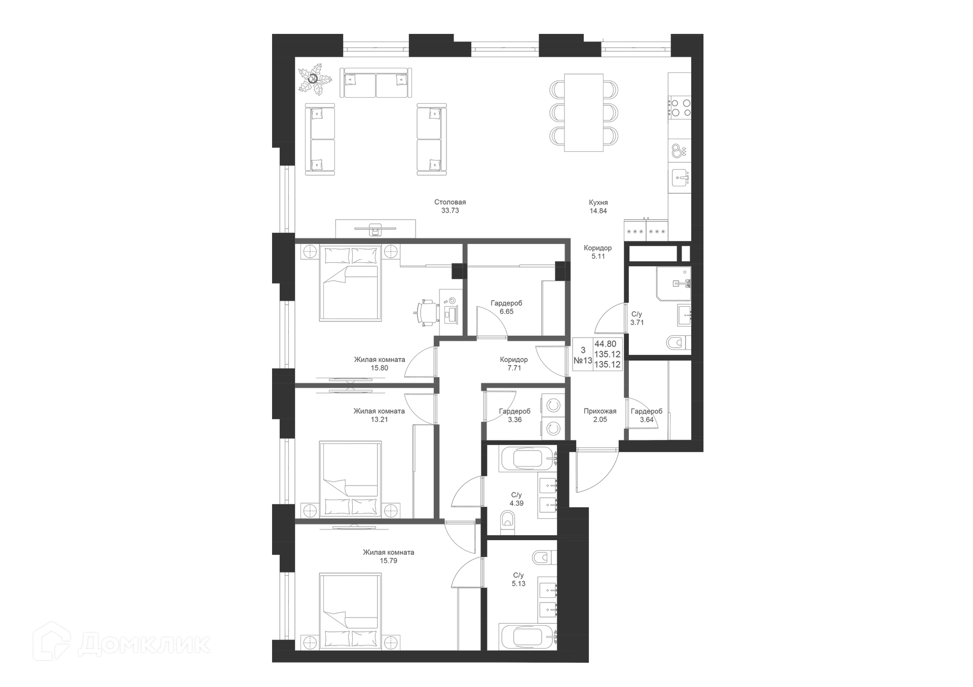Площади квартир