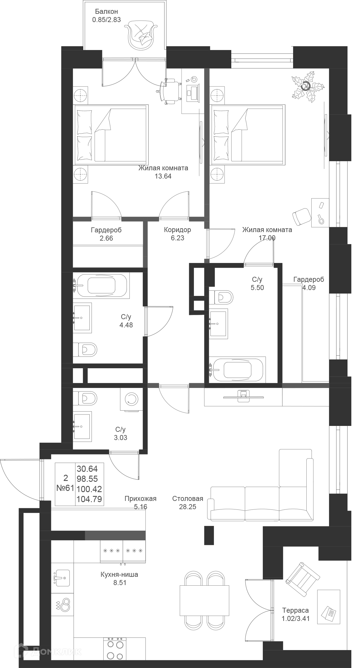Площади квартир