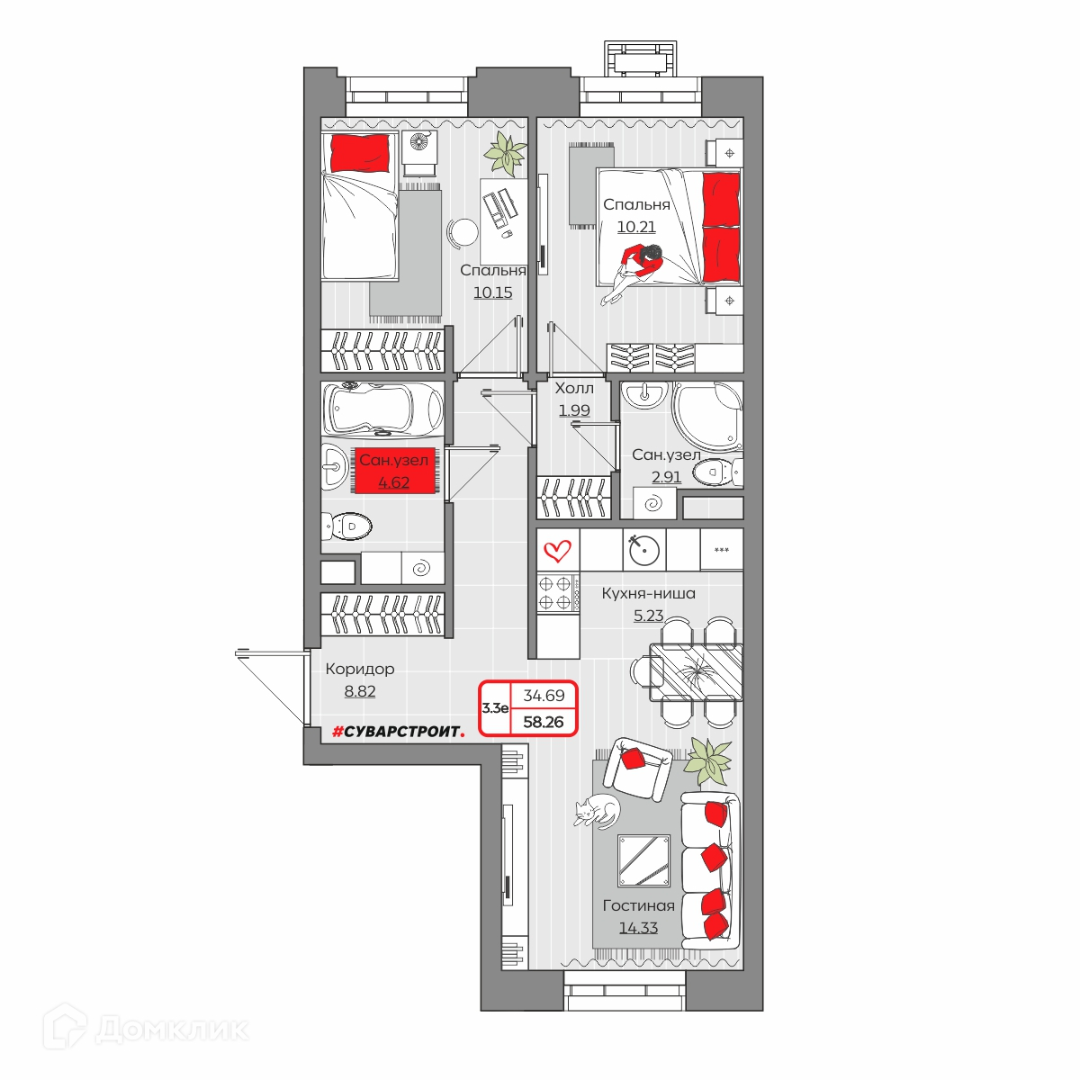 Площади квартир