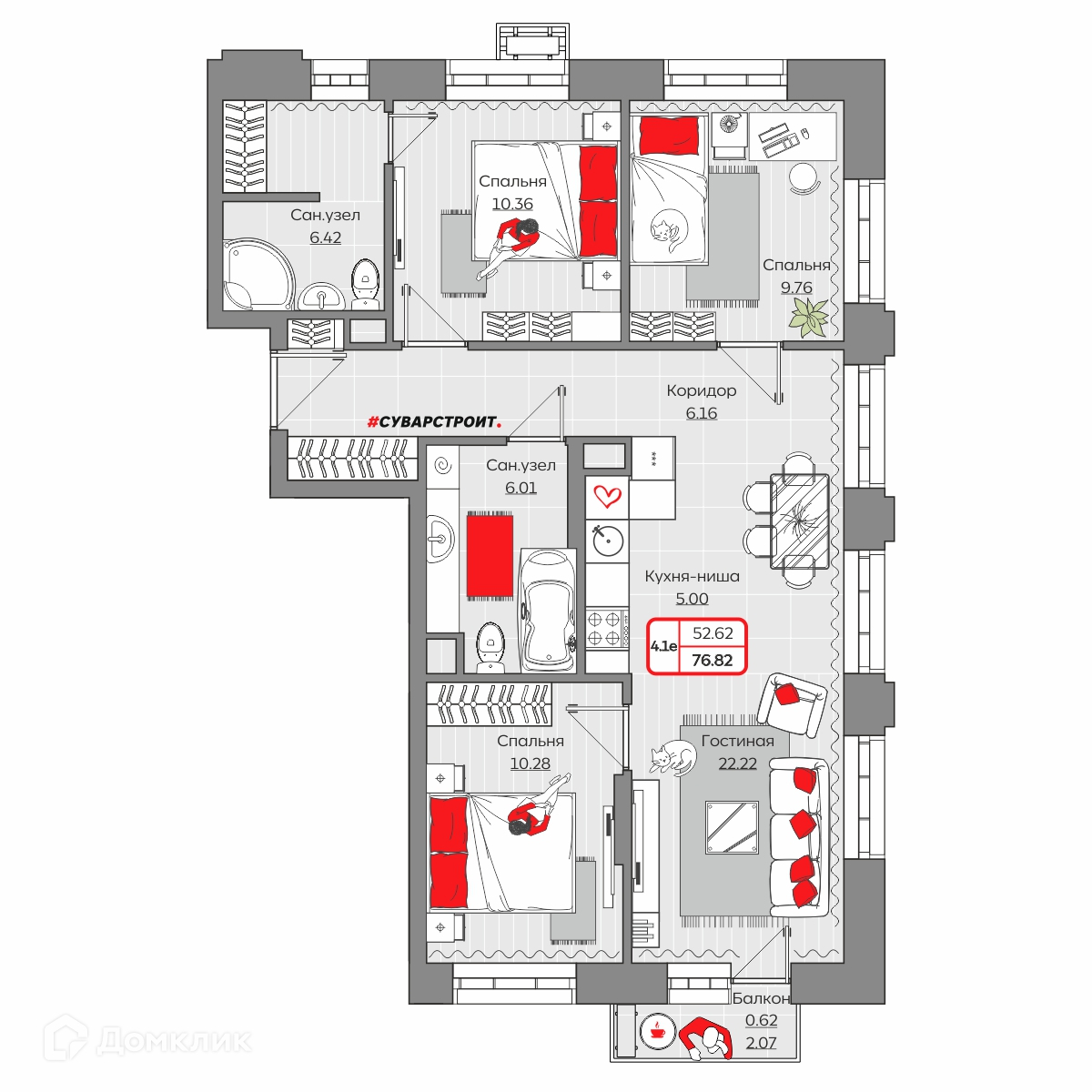 Площади квартир