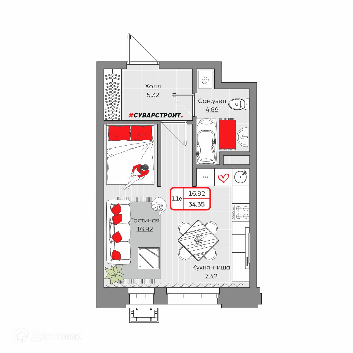 Площади квартир