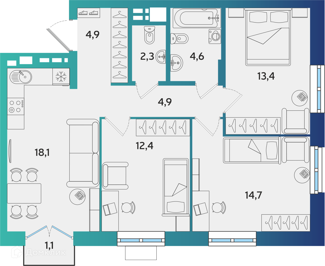 Предлагается 3-комнатная квартира в современном жилом комплексе "ЖК Экополис" 🏢. Квартира расположена на 9-м этаже 17-этажного дома. Отличный вариант для комфортной жизни.