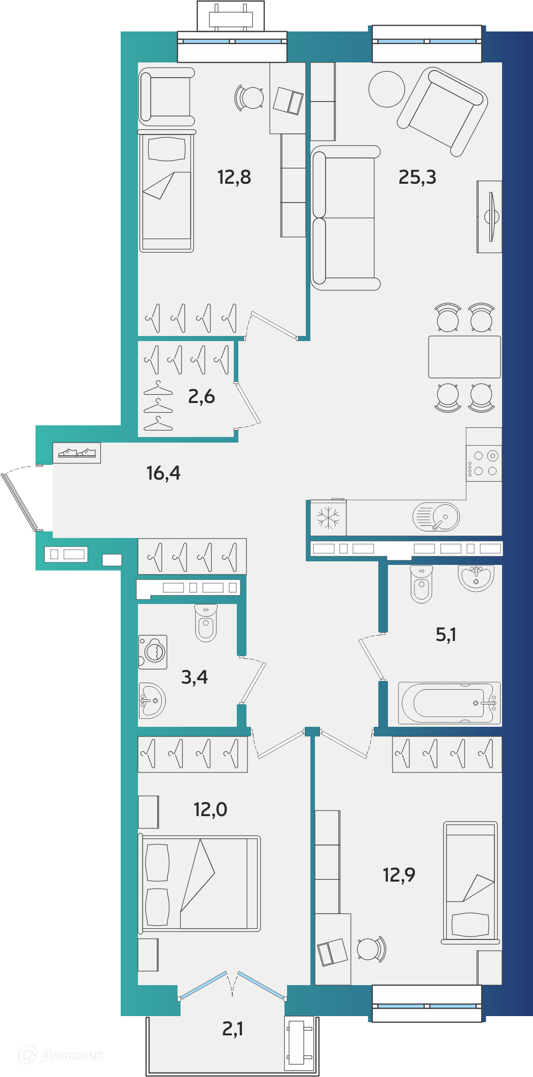 Площади квартир