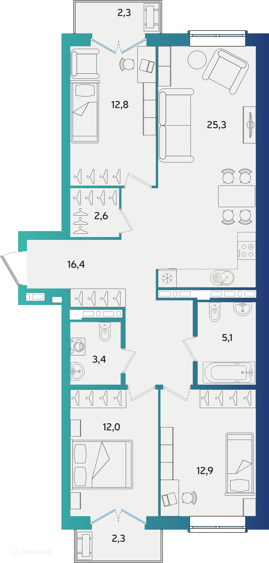 Площади квартир