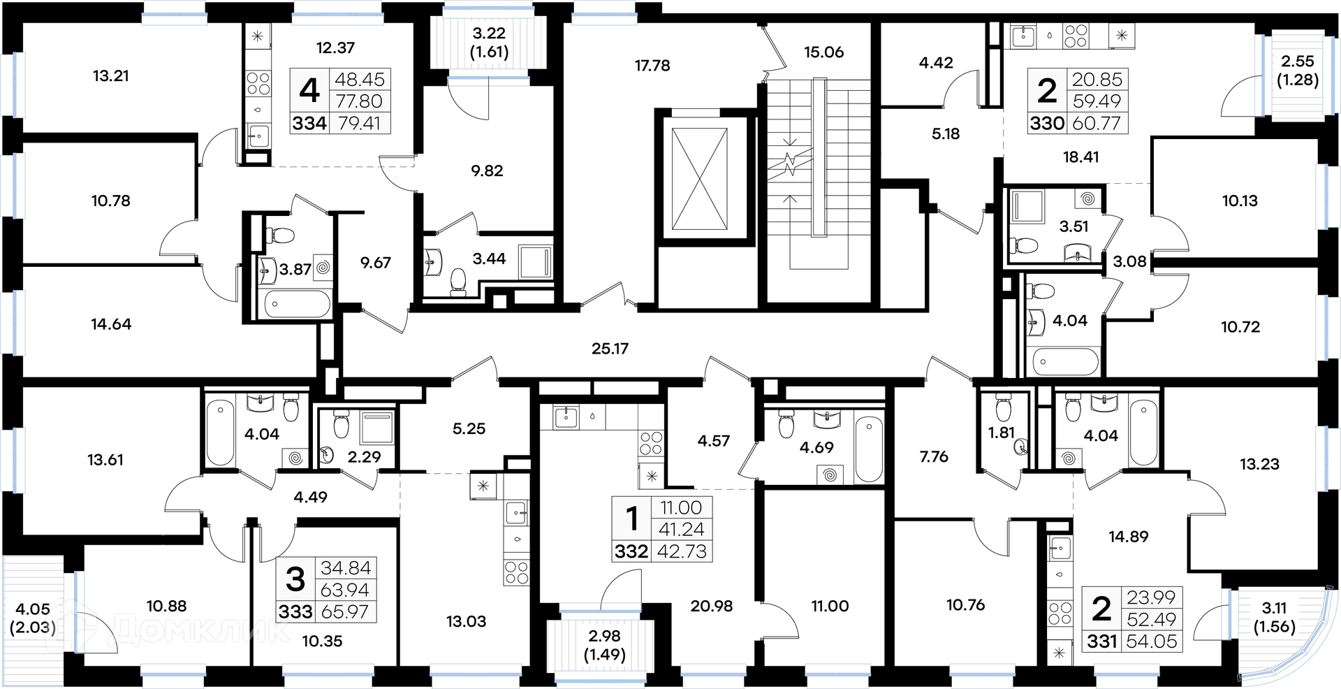 Площади квартир