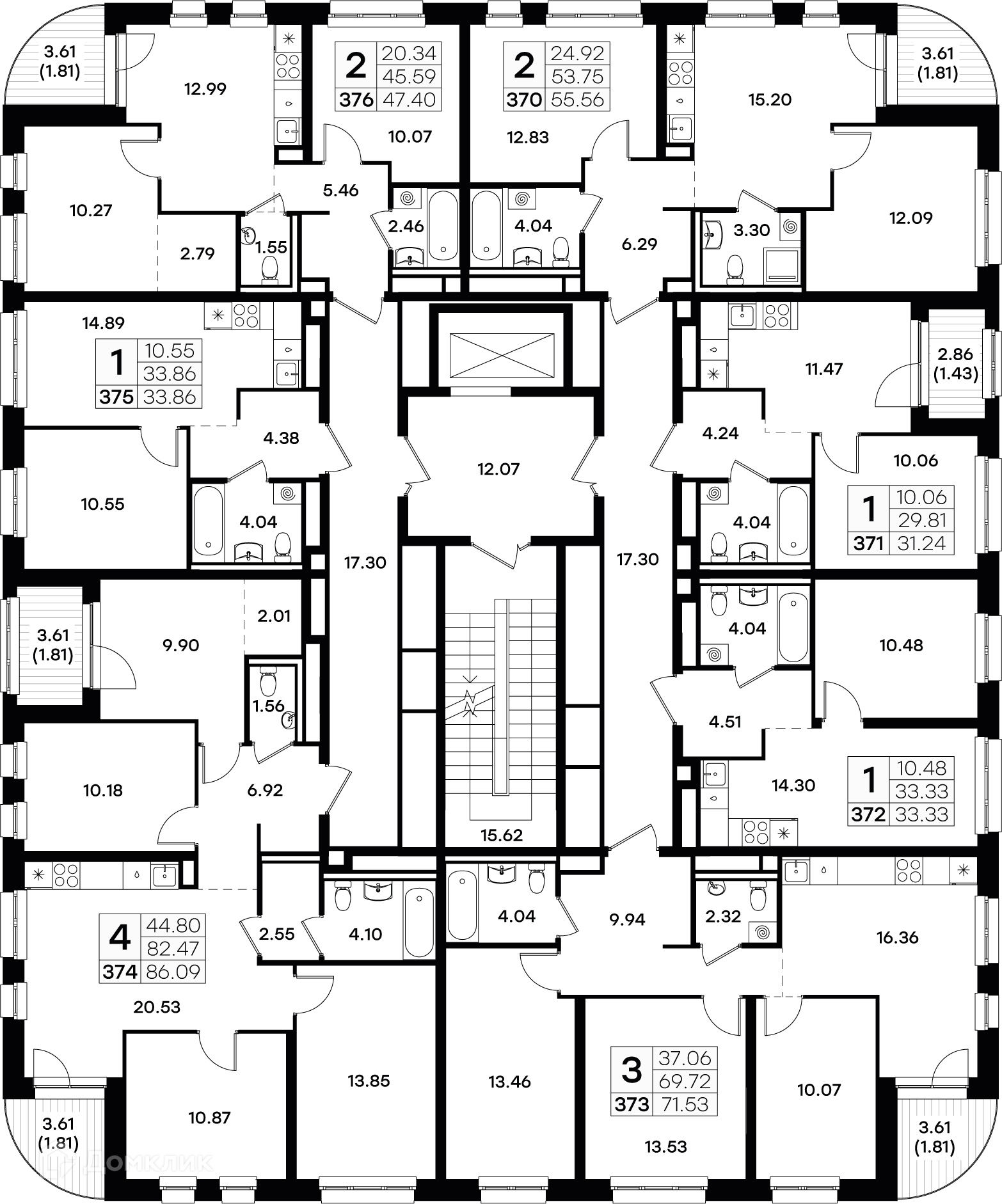 Площади квартир
