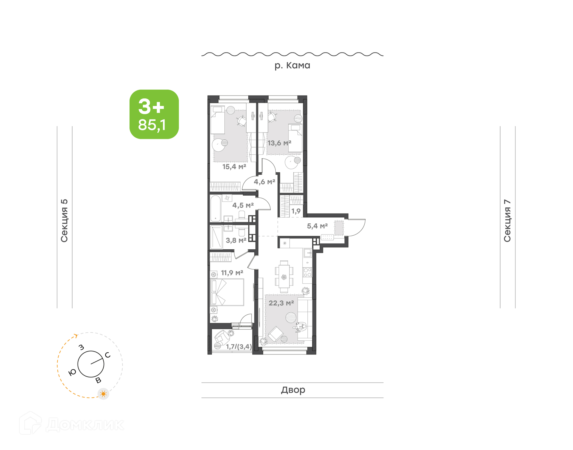Предлагается 3-комнатная квартира в востребованном жилом комплексе "ЖК Премьер-квартал на Набережной" 🏢. Квартира расположена на 3-м этаже 21-этажного дома. Отличный вариант для комфортной жизни.