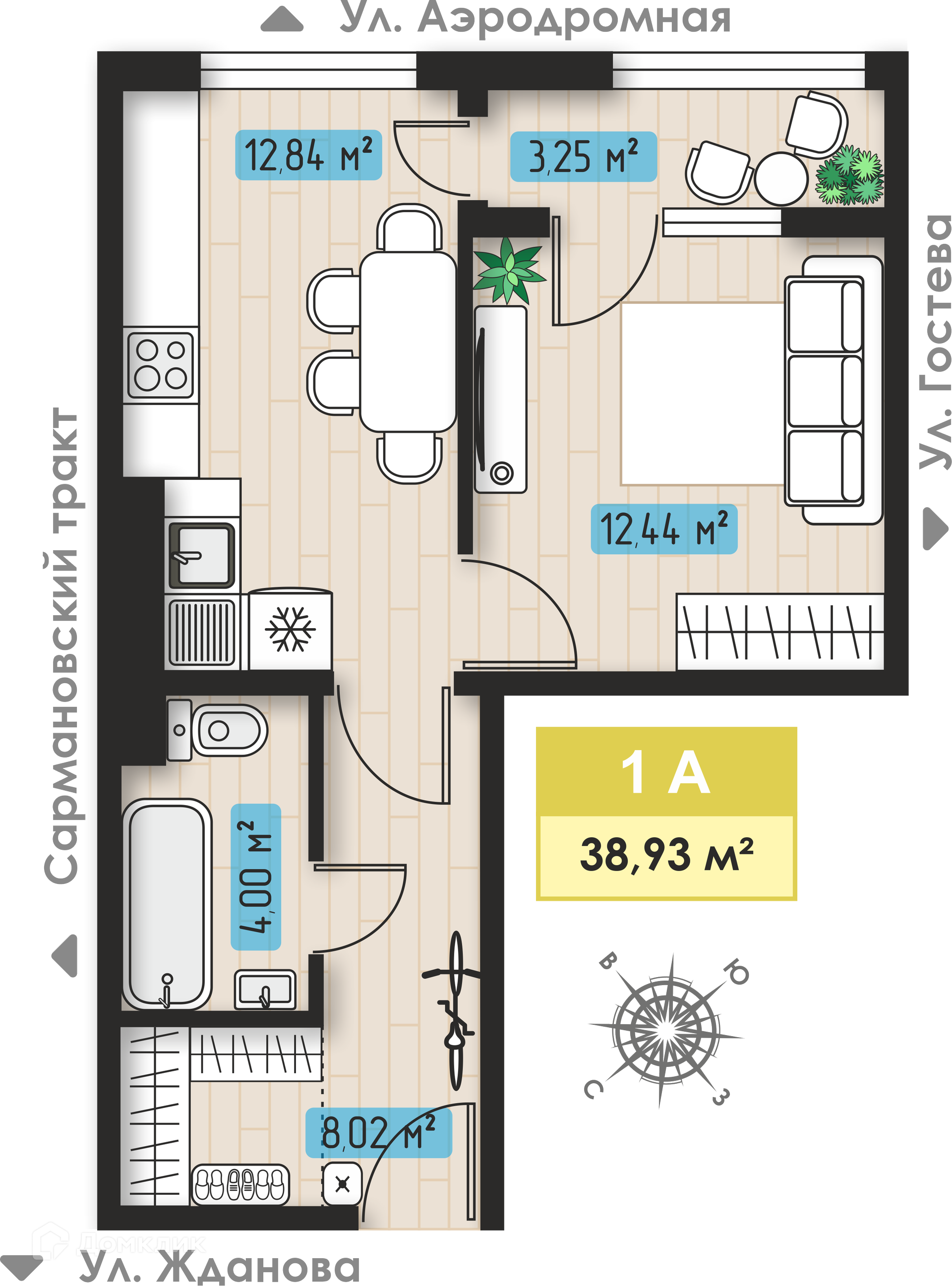 Планировка 1 комн. в ЖК Авиатор