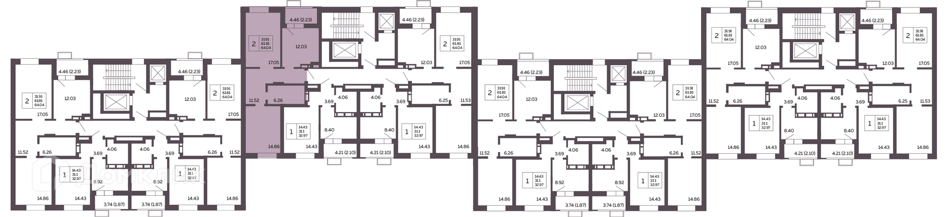 Площади квартир