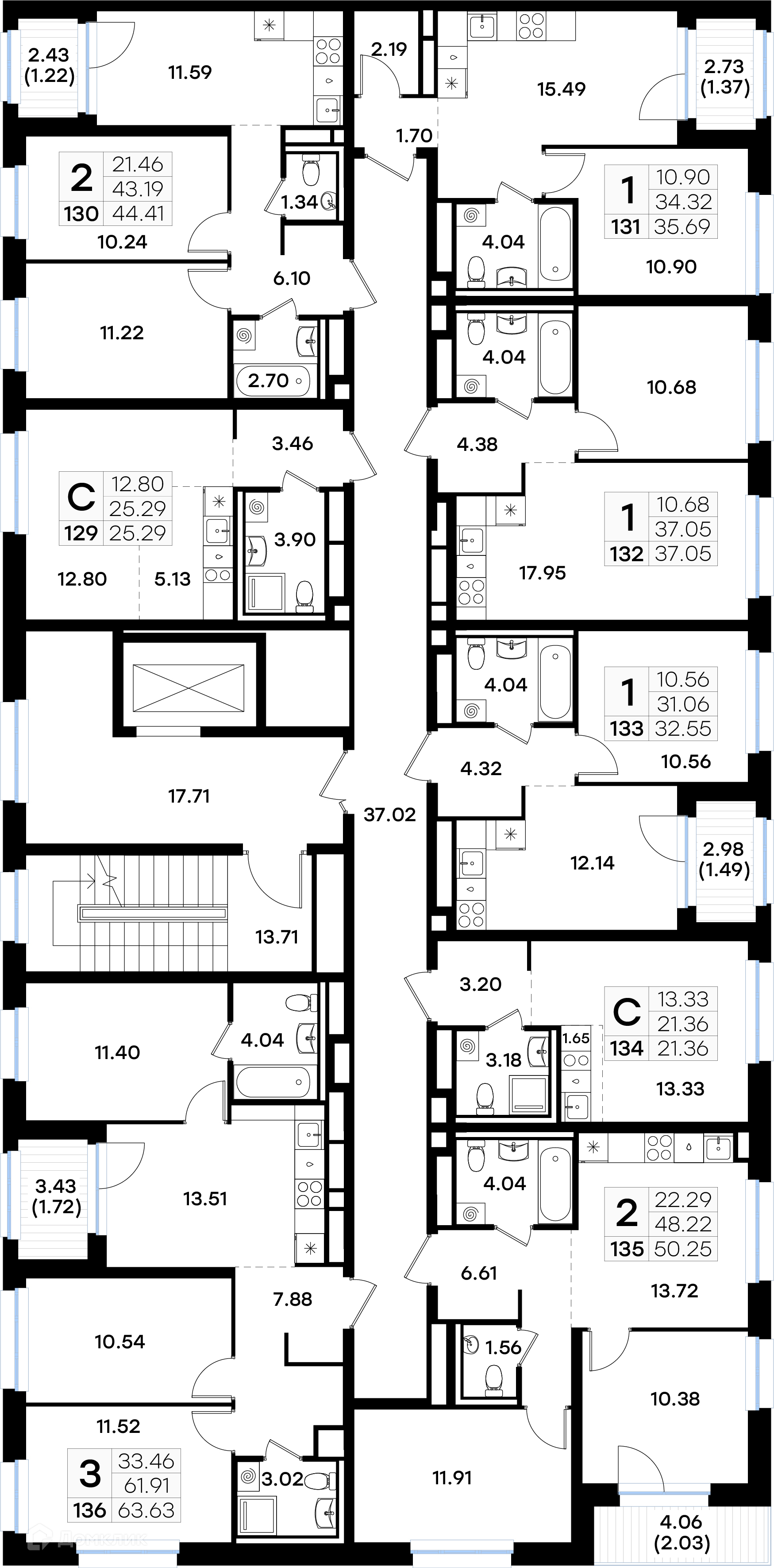 Площади квартир