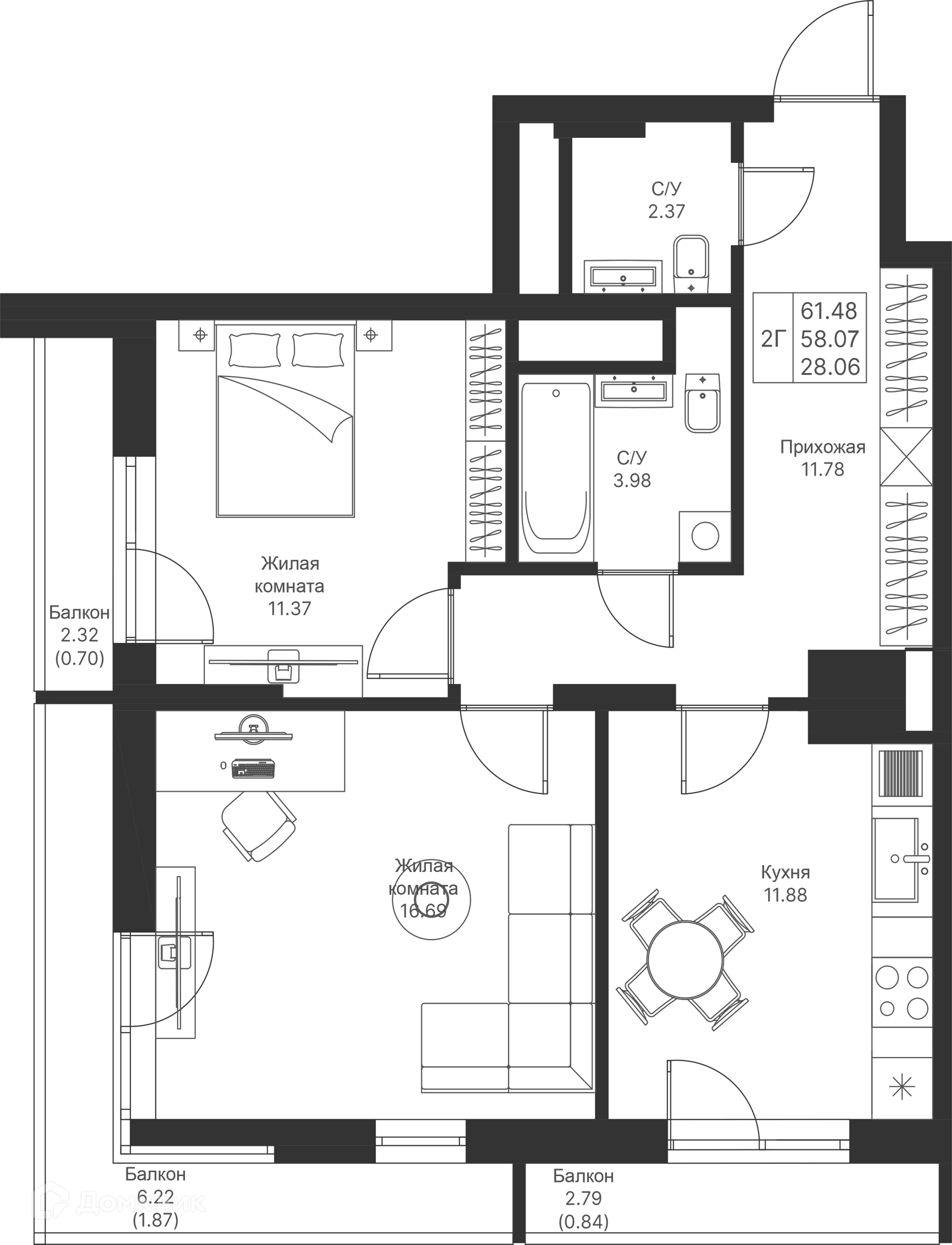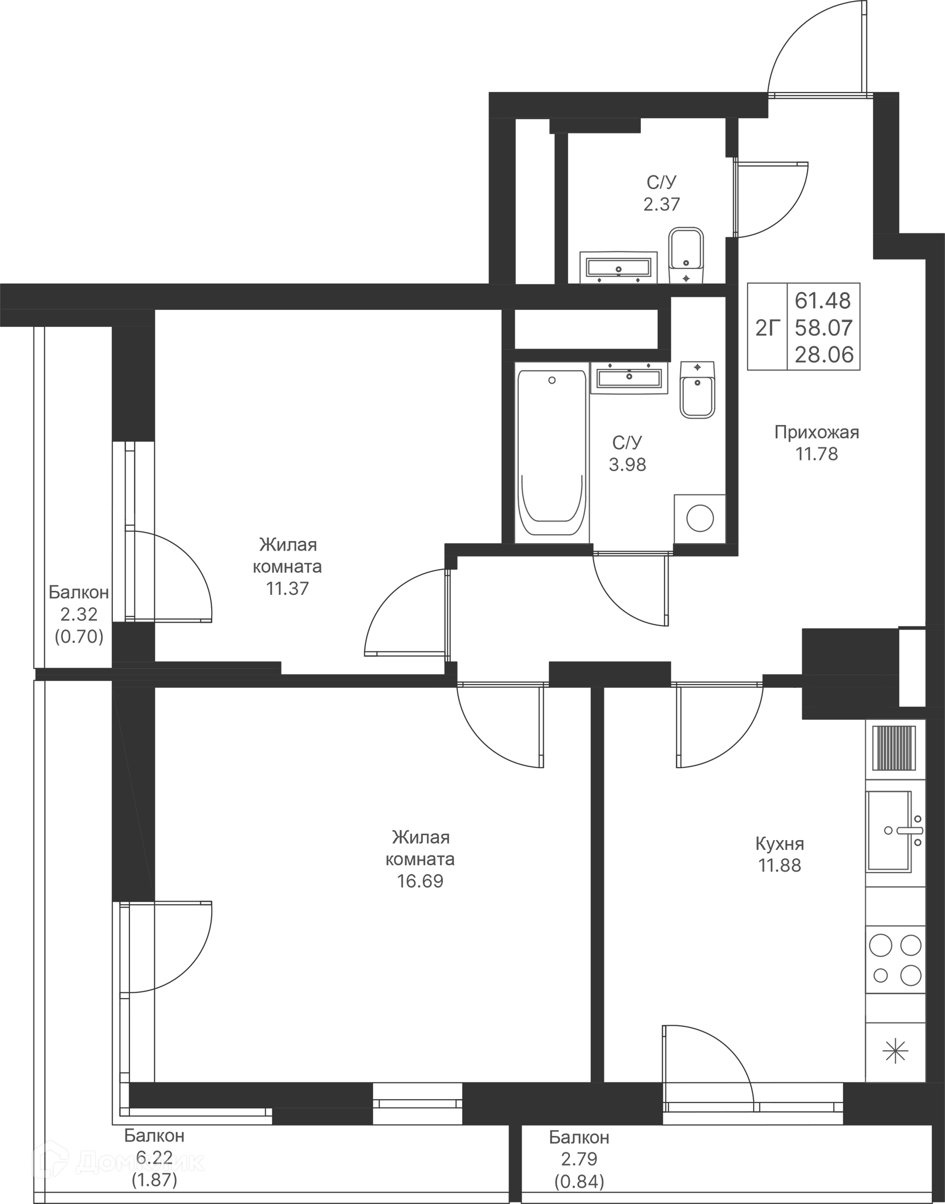 Площади квартир