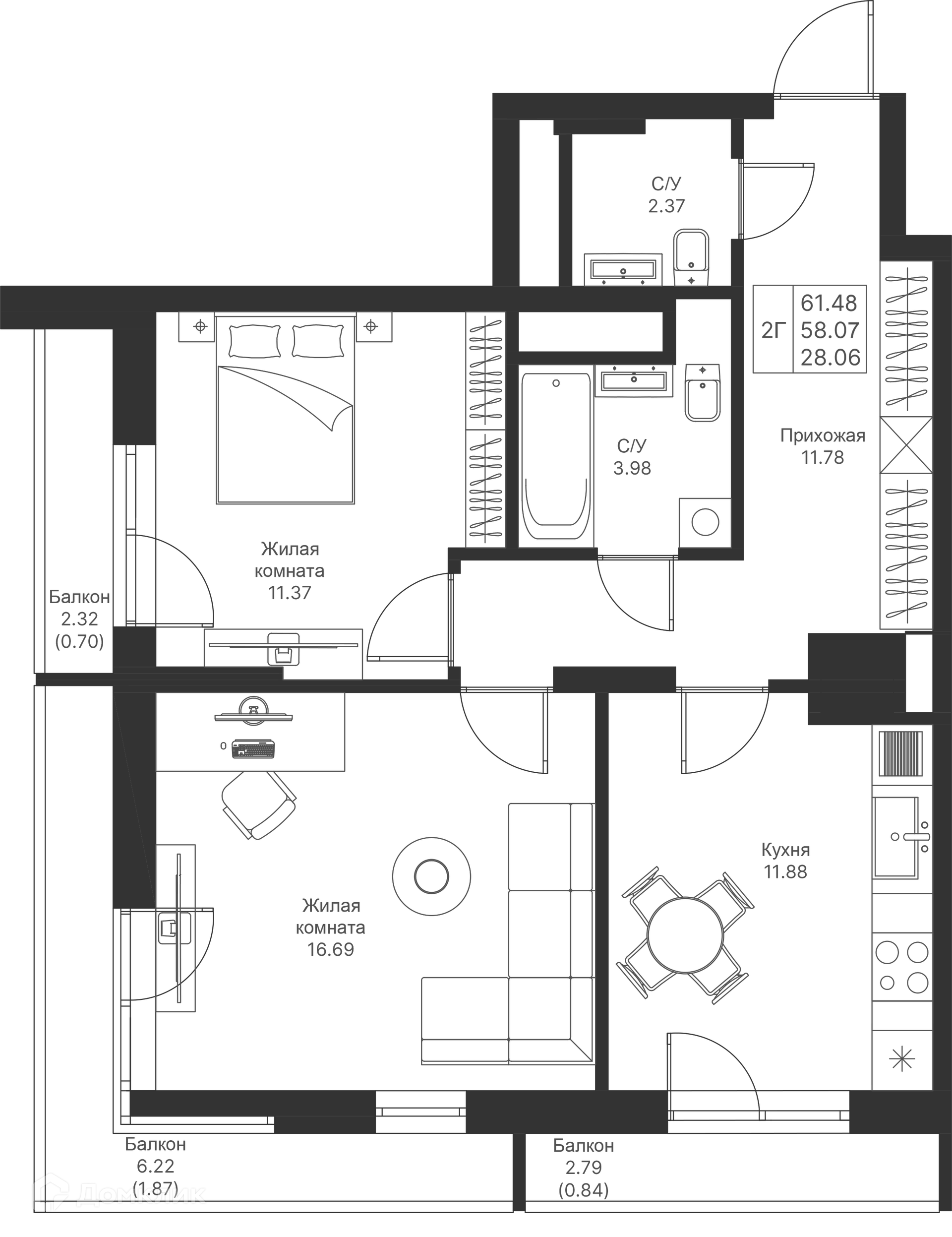 Площади квартир