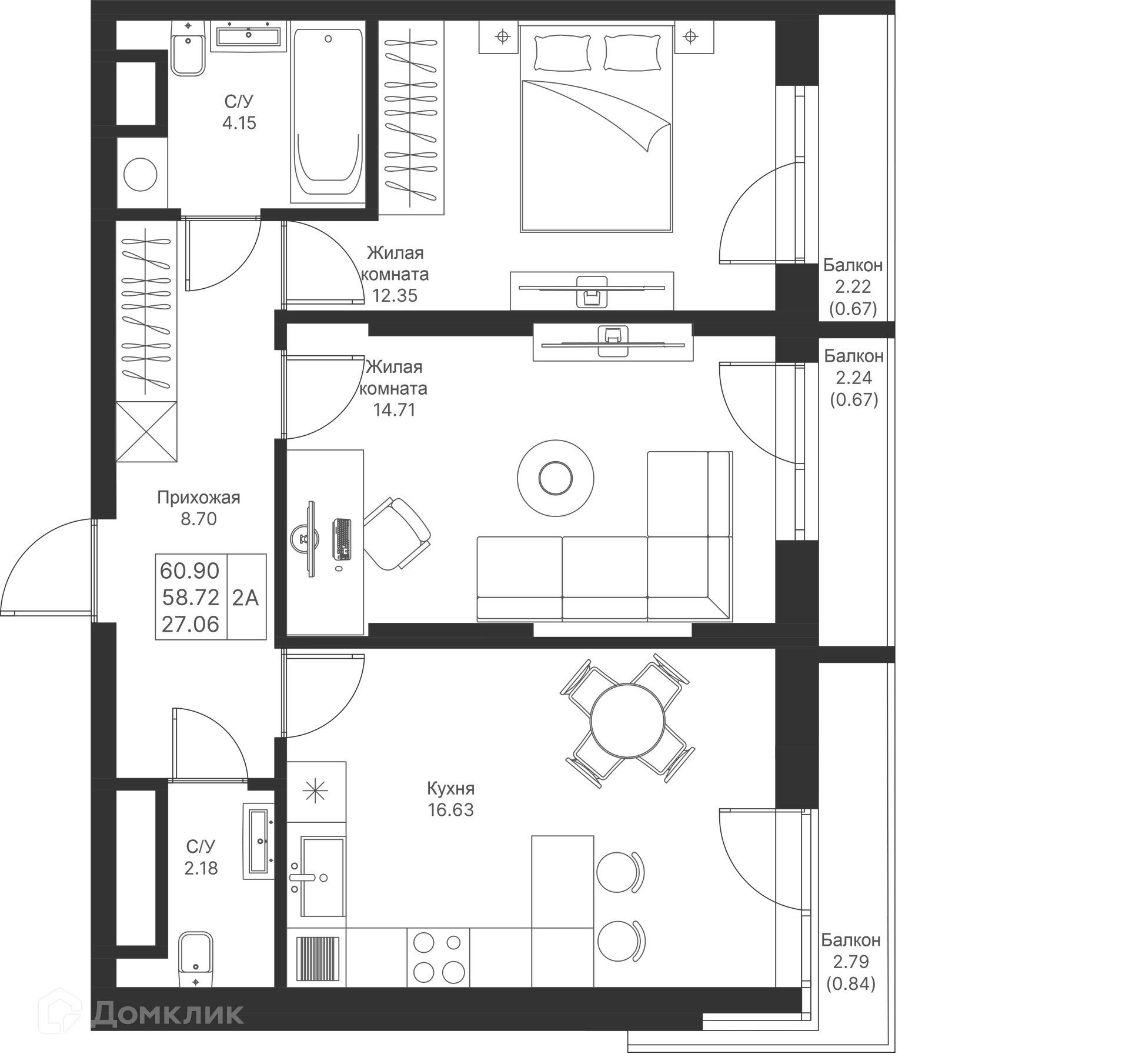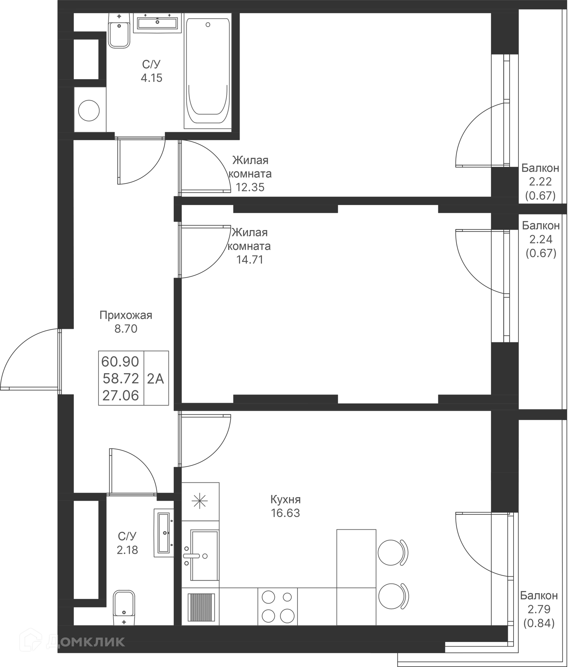 Площади квартир