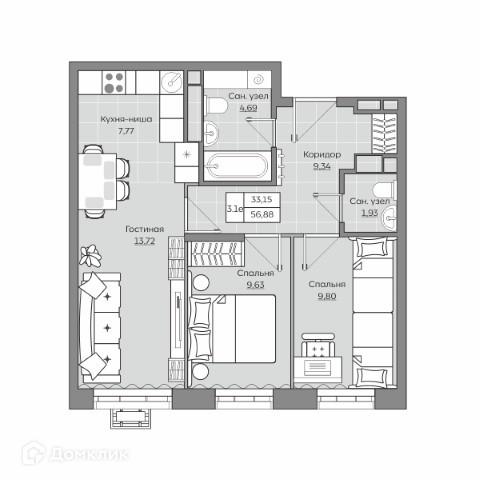 Площади квартир