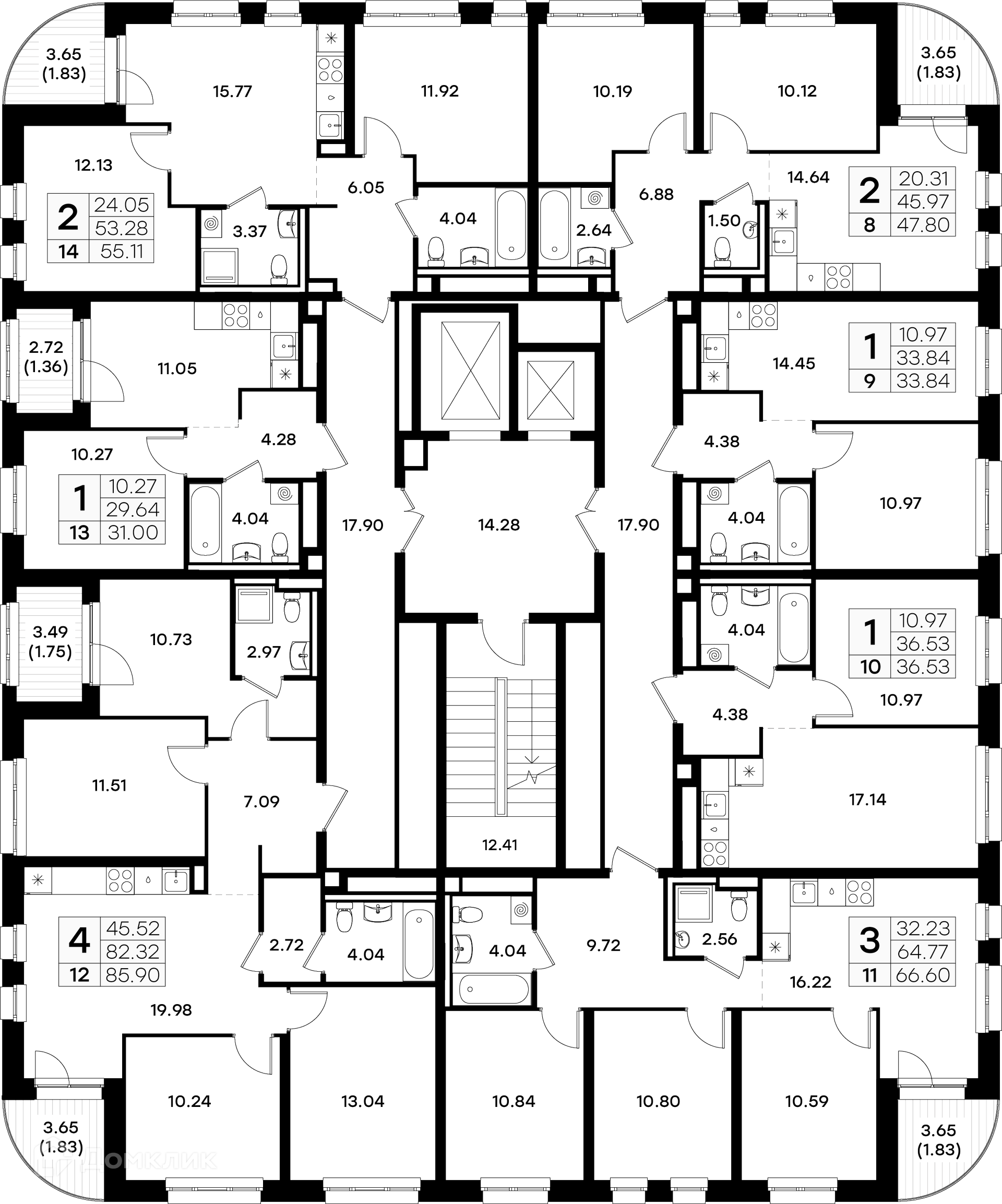 Площади квартир