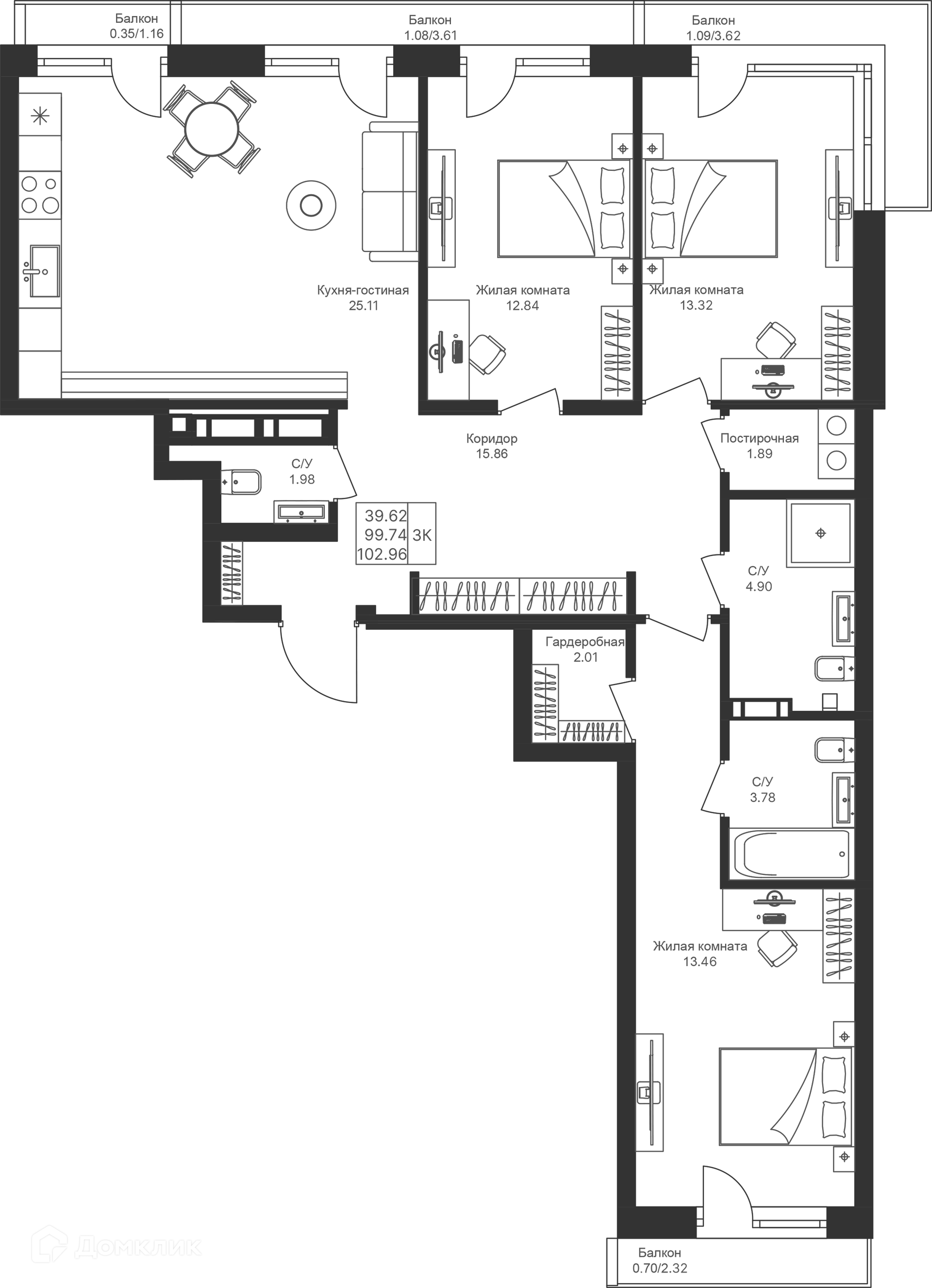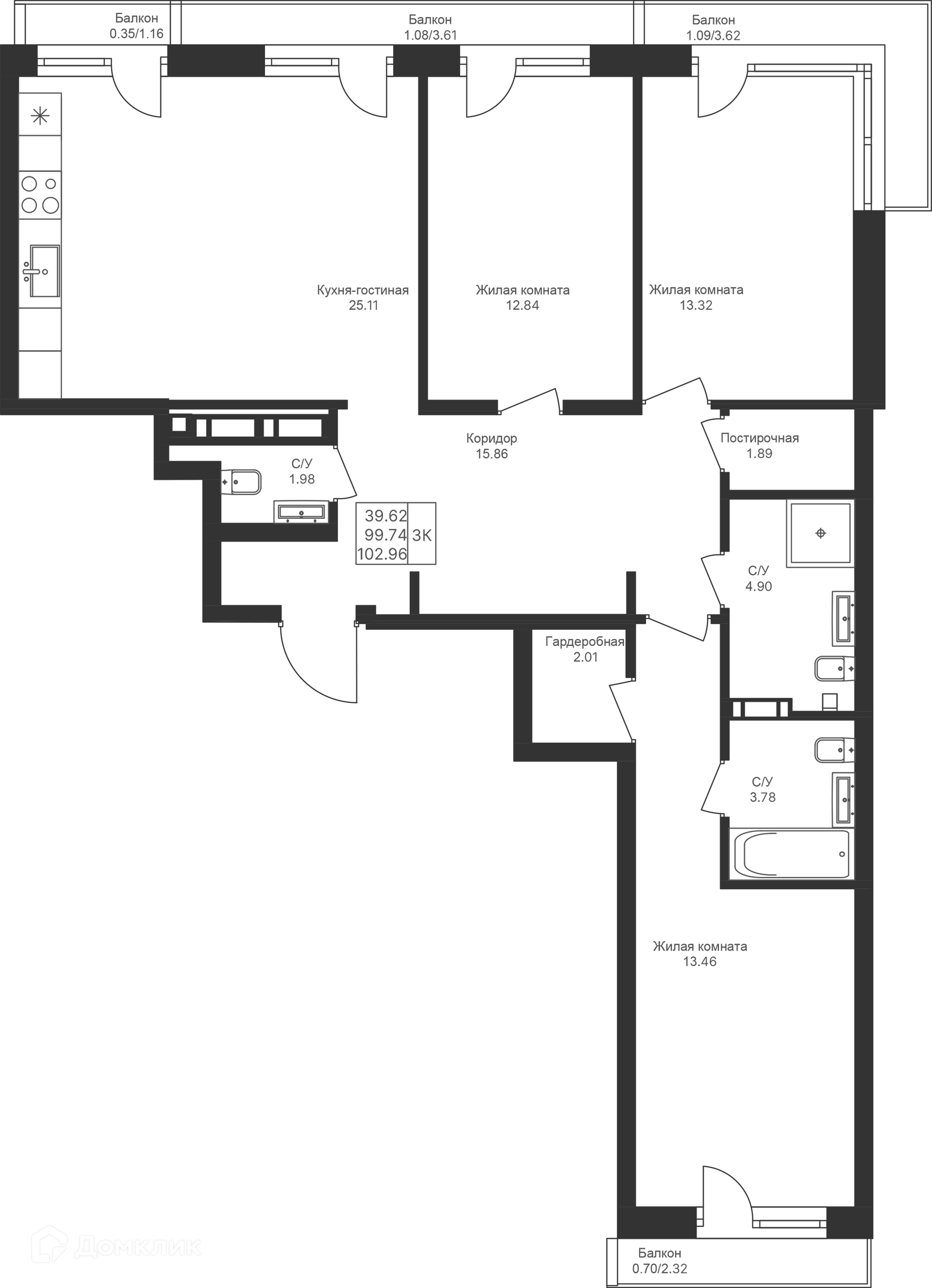 Площади квартир