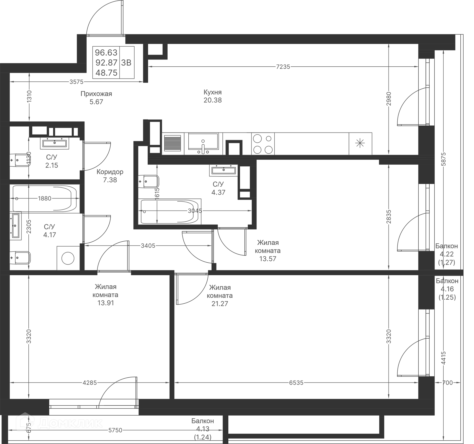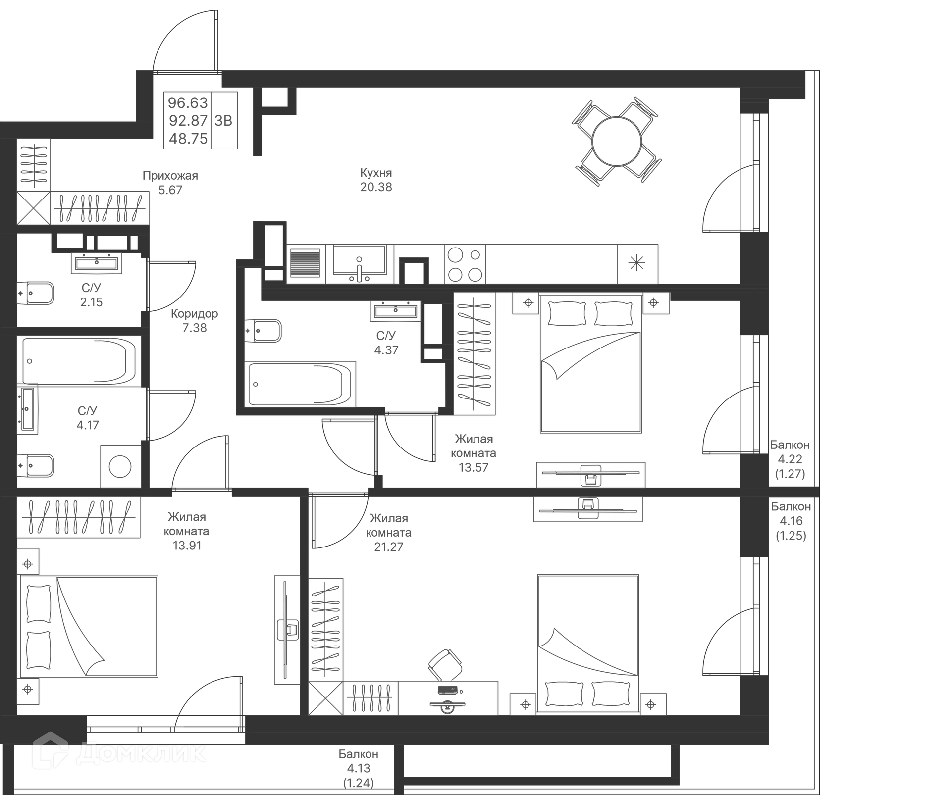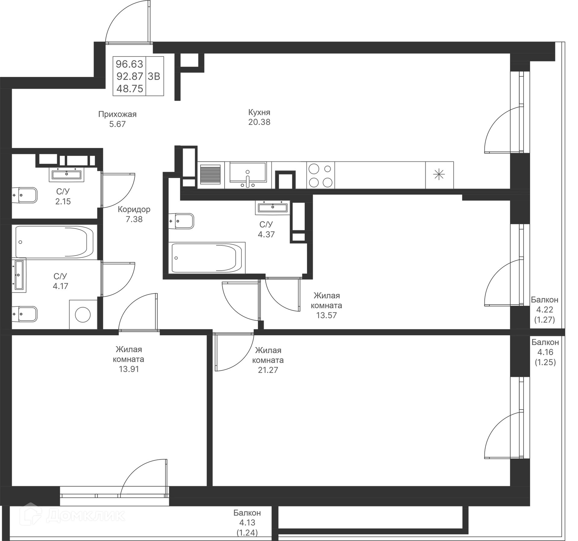 Площади квартир