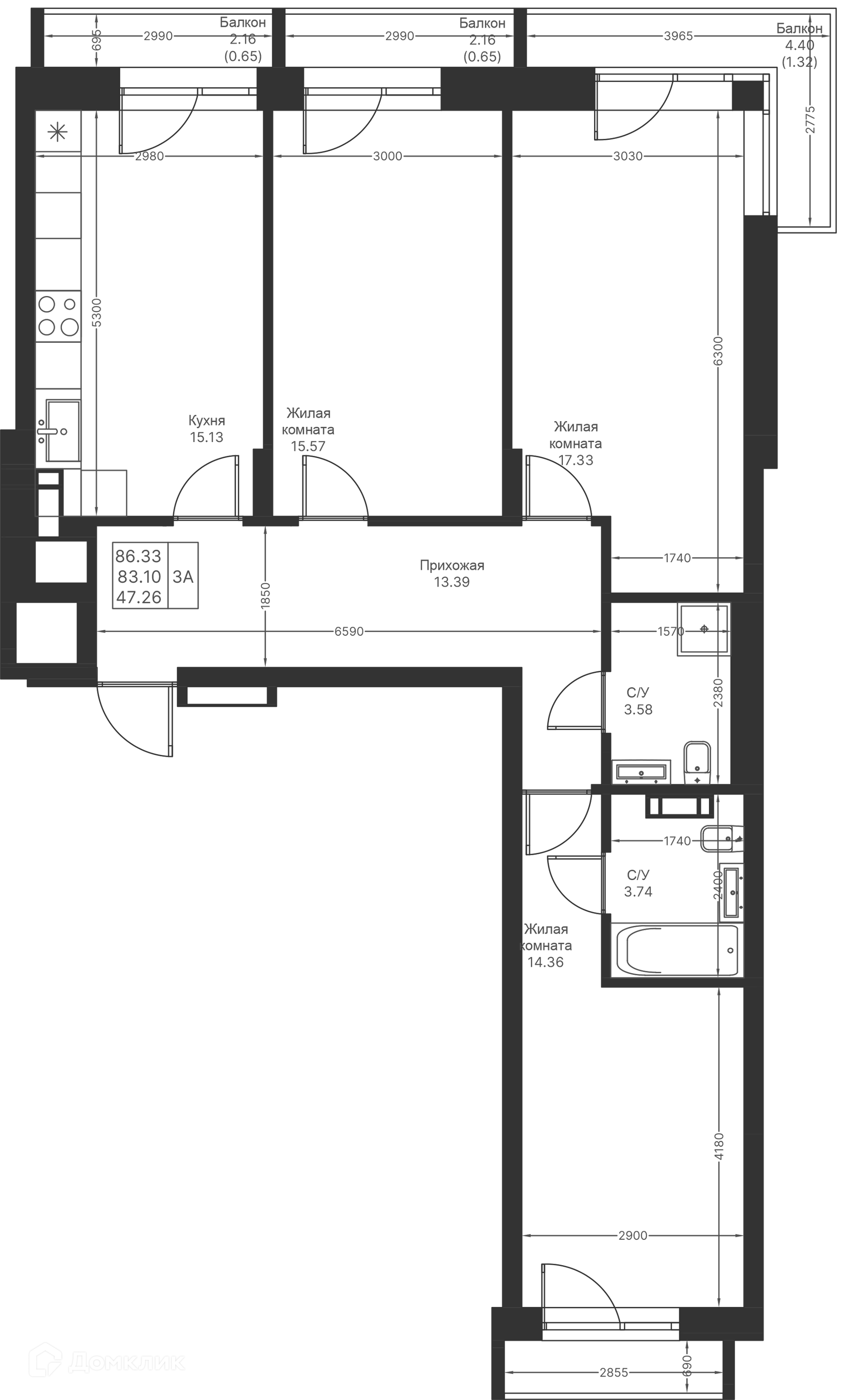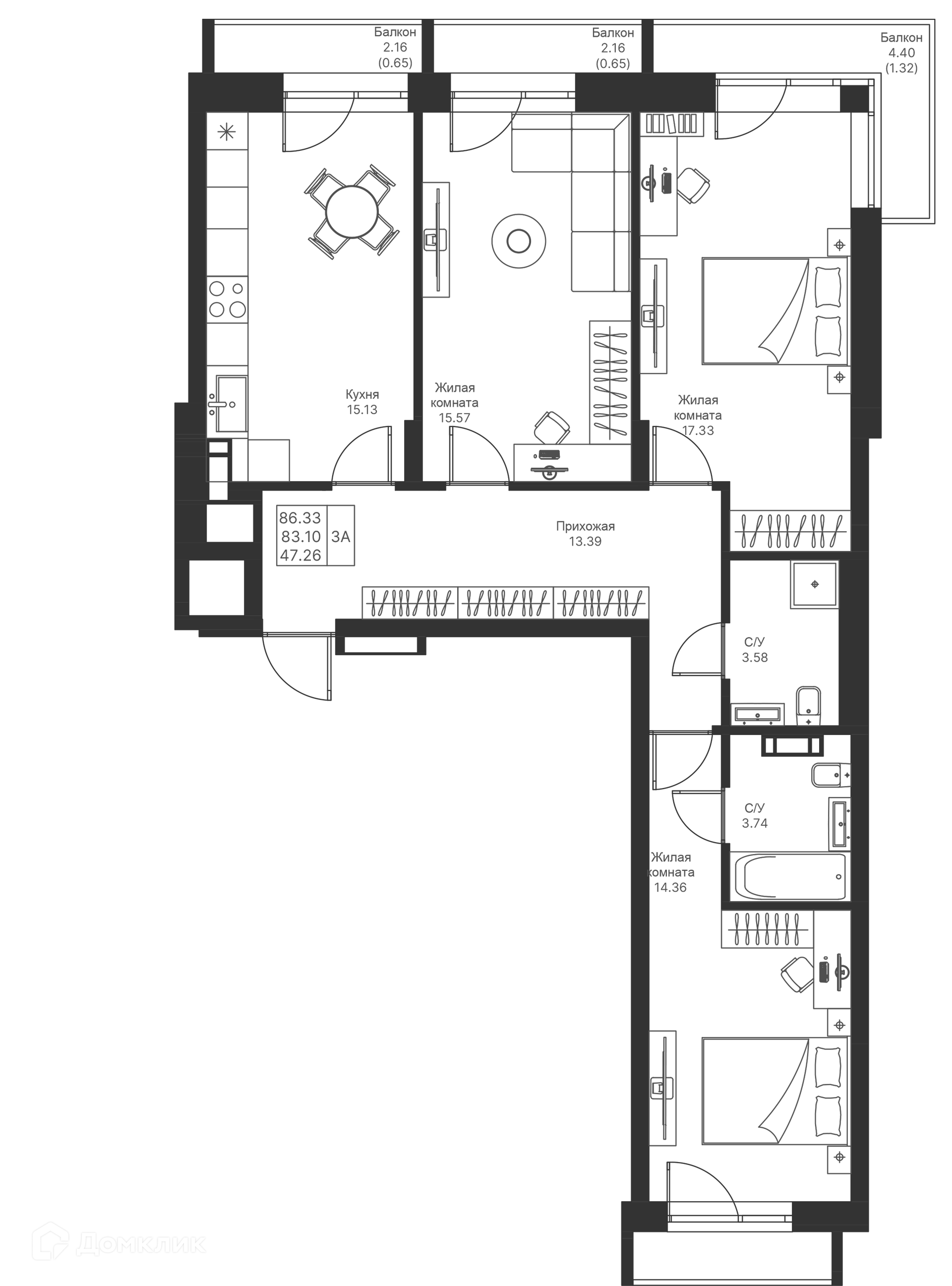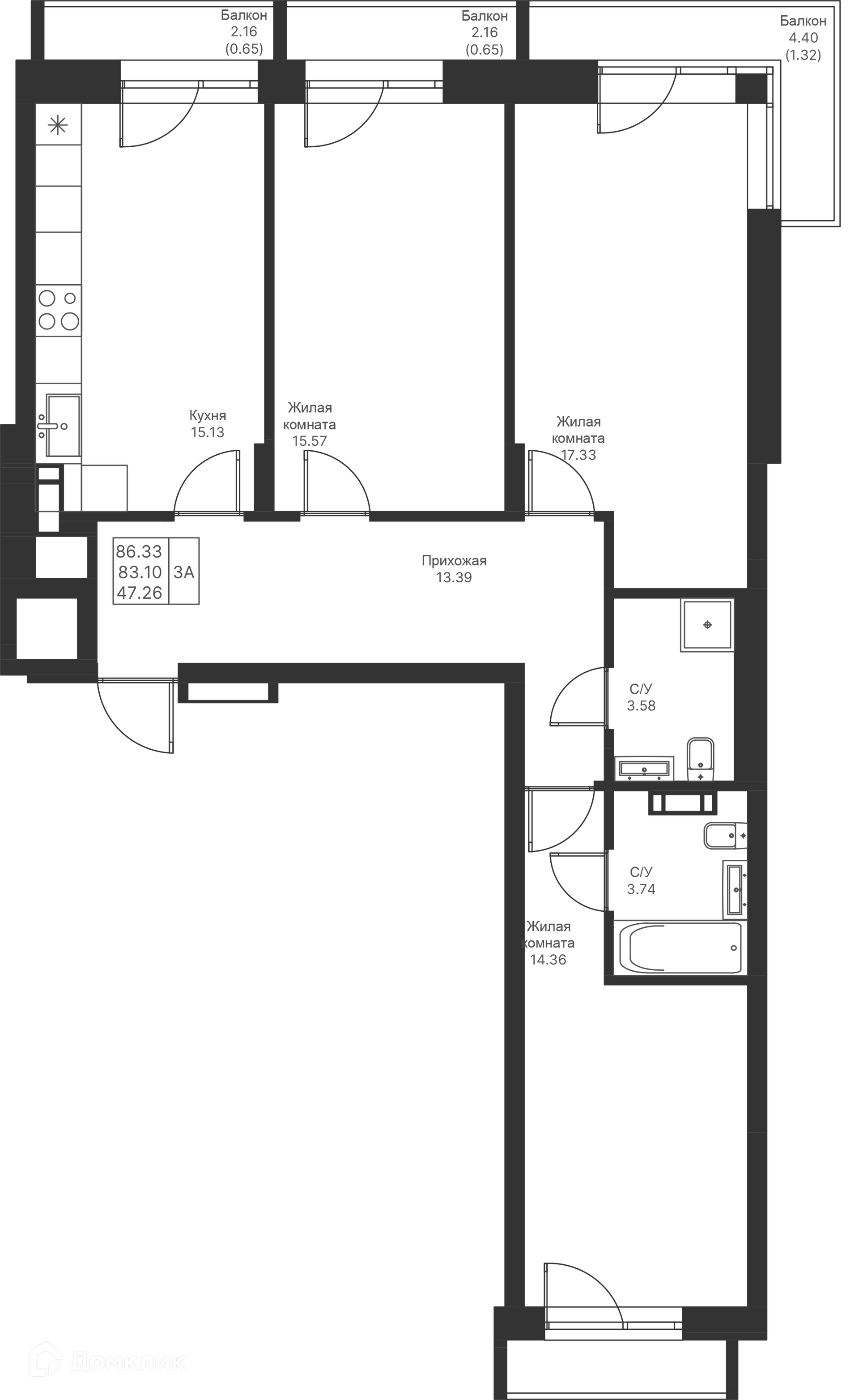 Площади квартир