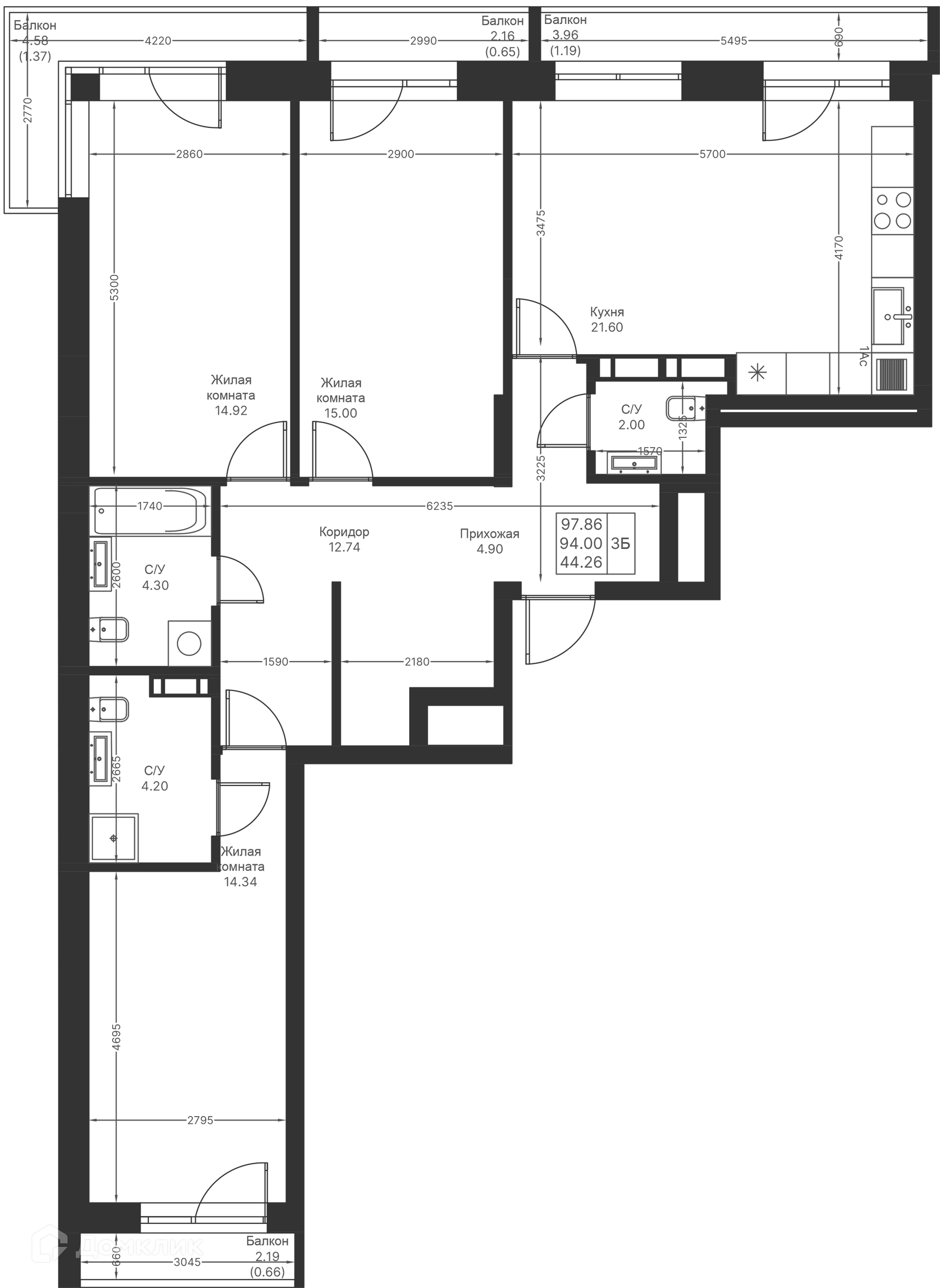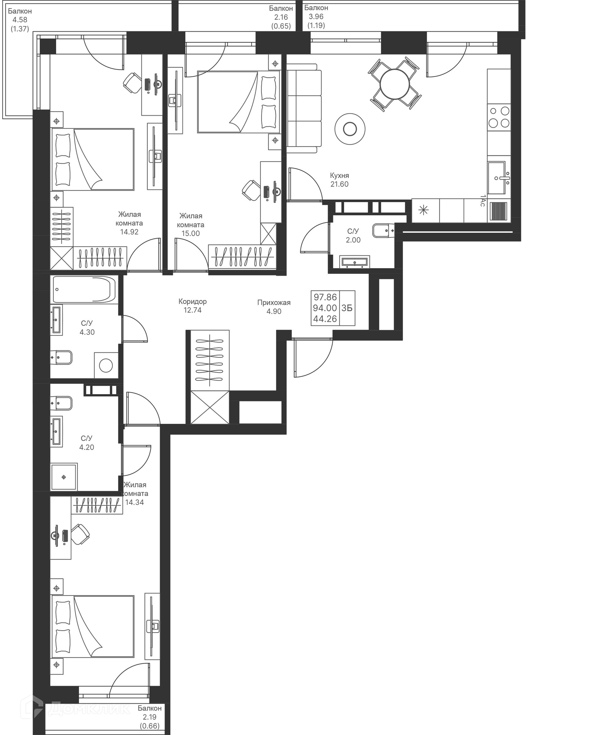 Площади квартир