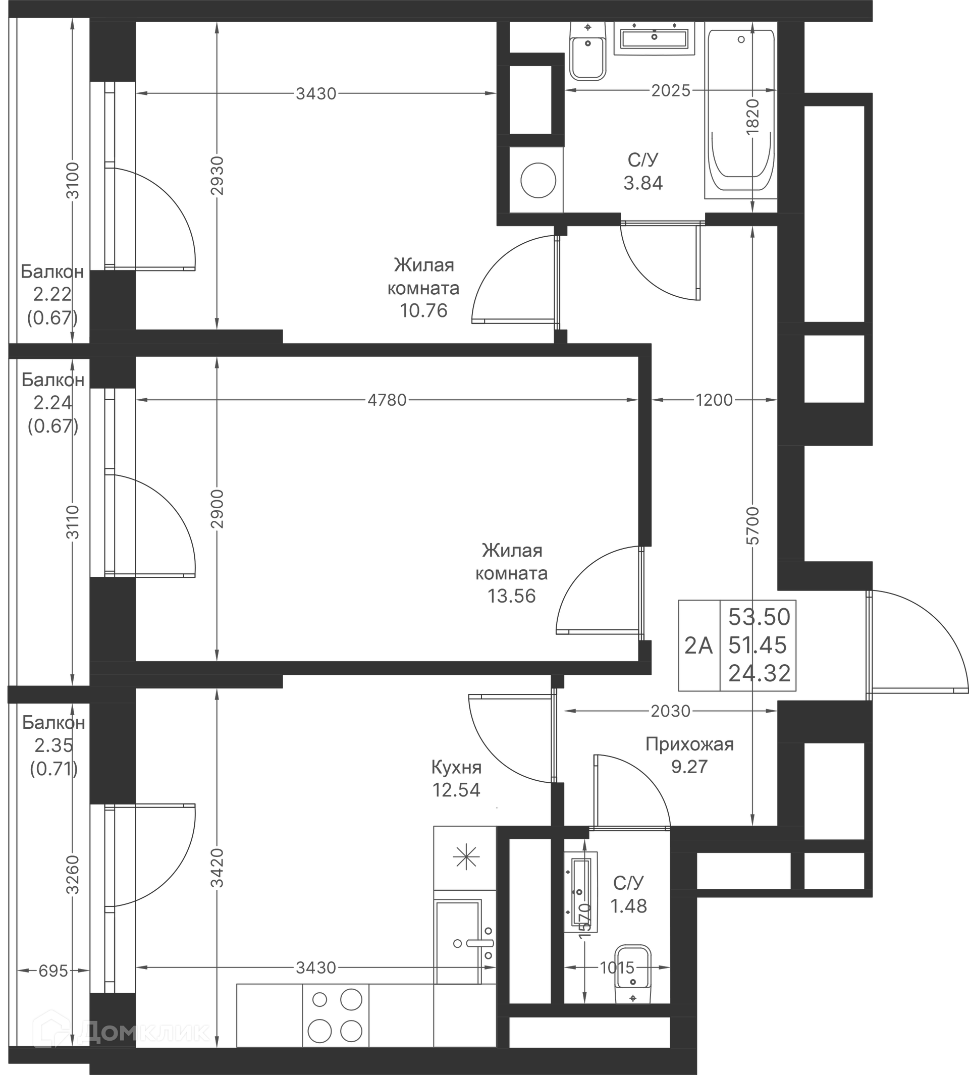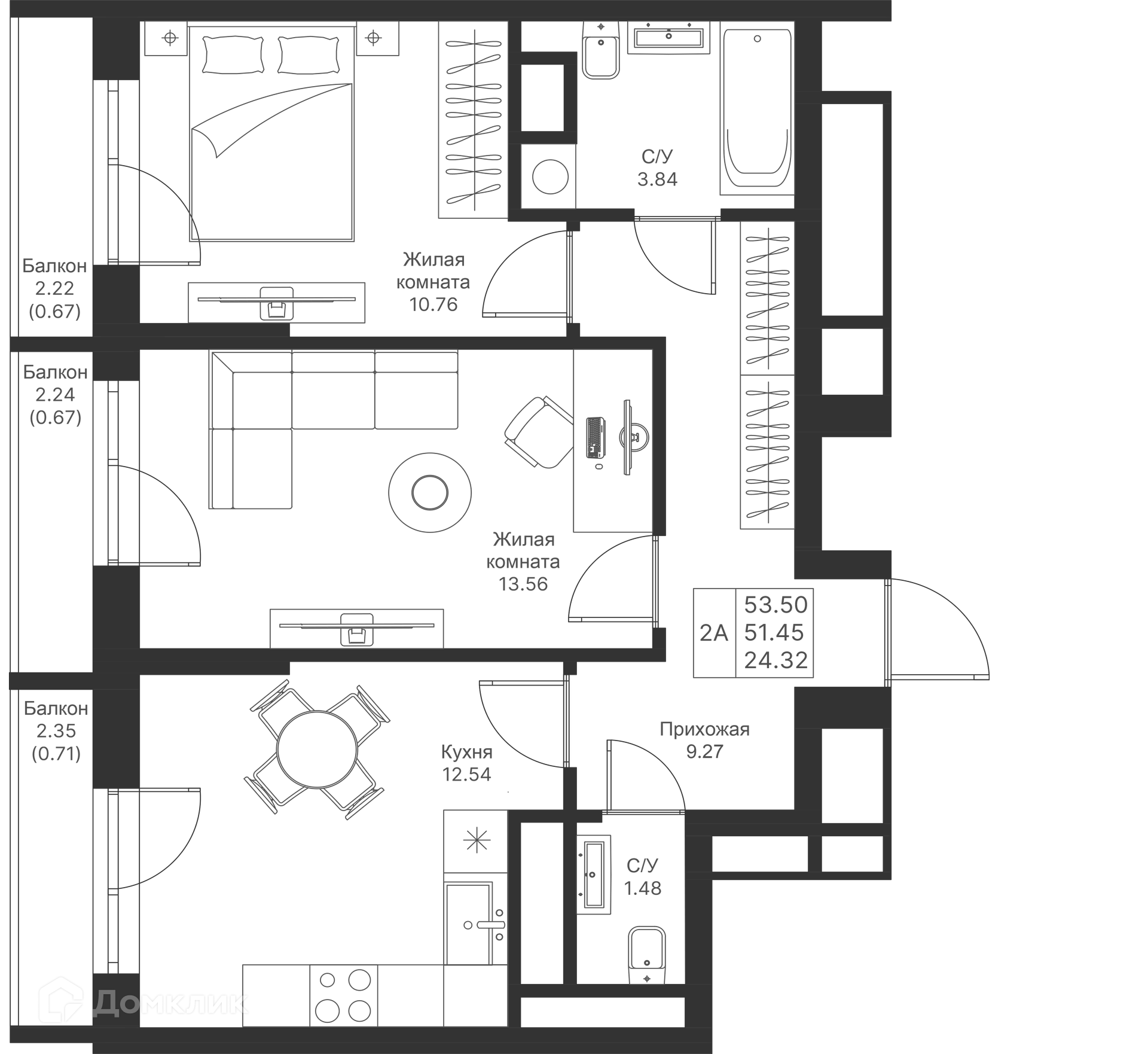 Площади квартир