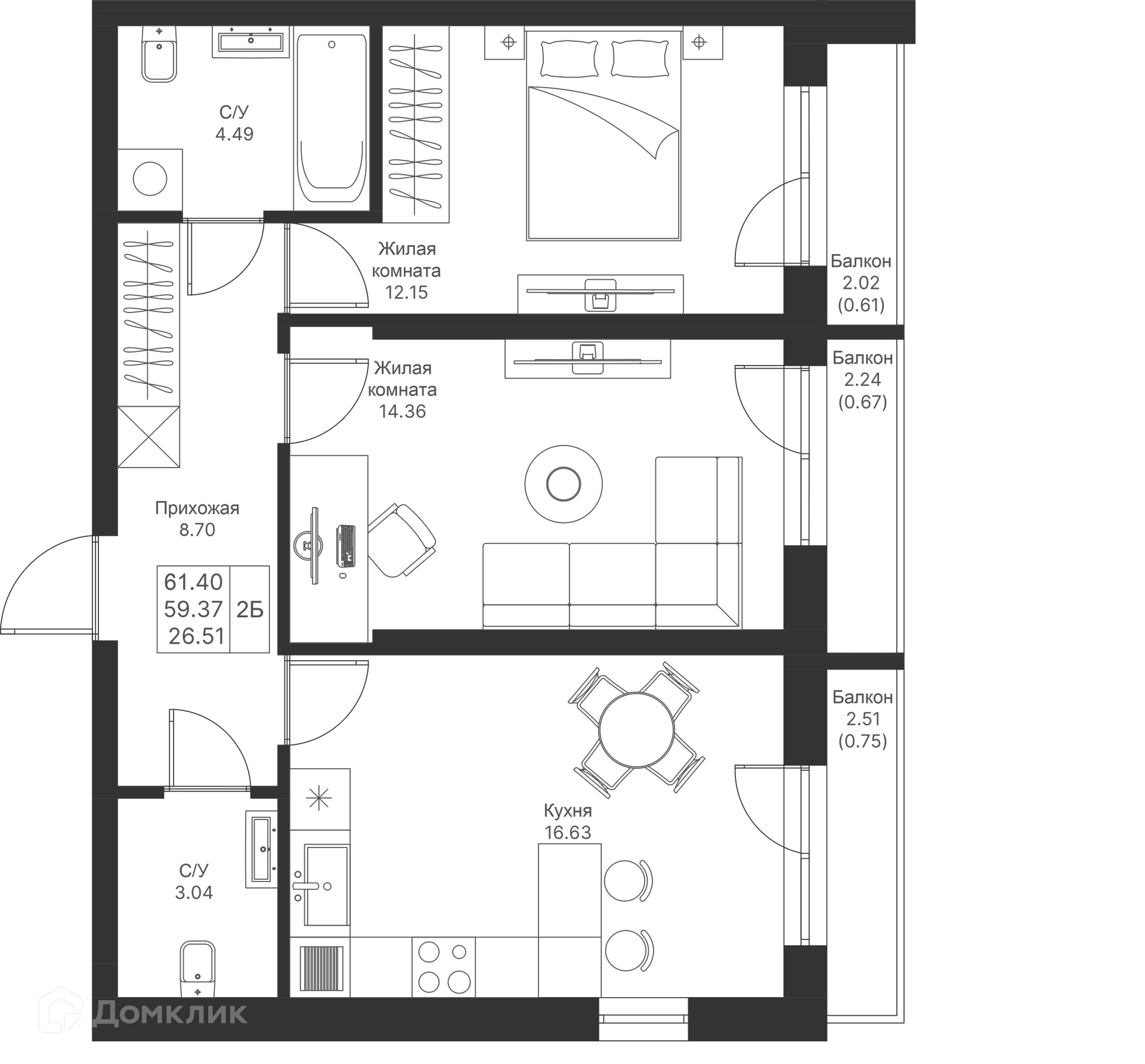 Площади квартир