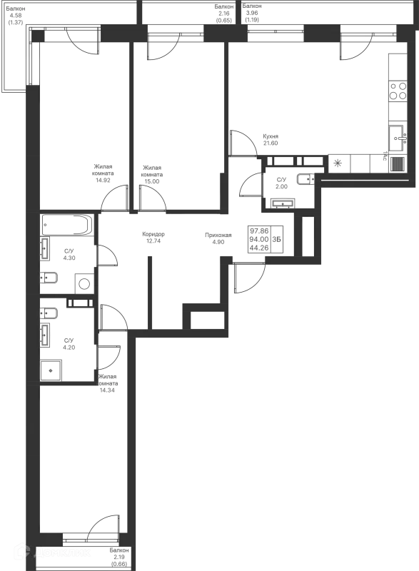 4 комн. квартира в Казане в ипотеку от 287 804 руб/месяц