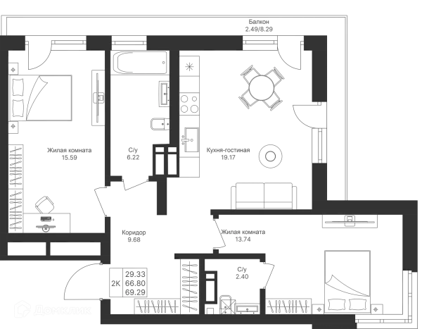 2 комн. квартира в Казане в ипотеку от 99 194 руб/месяц