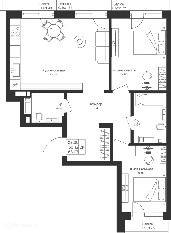 2 комн. квартира в Казане в ипотеку от 99 780 руб/месяц