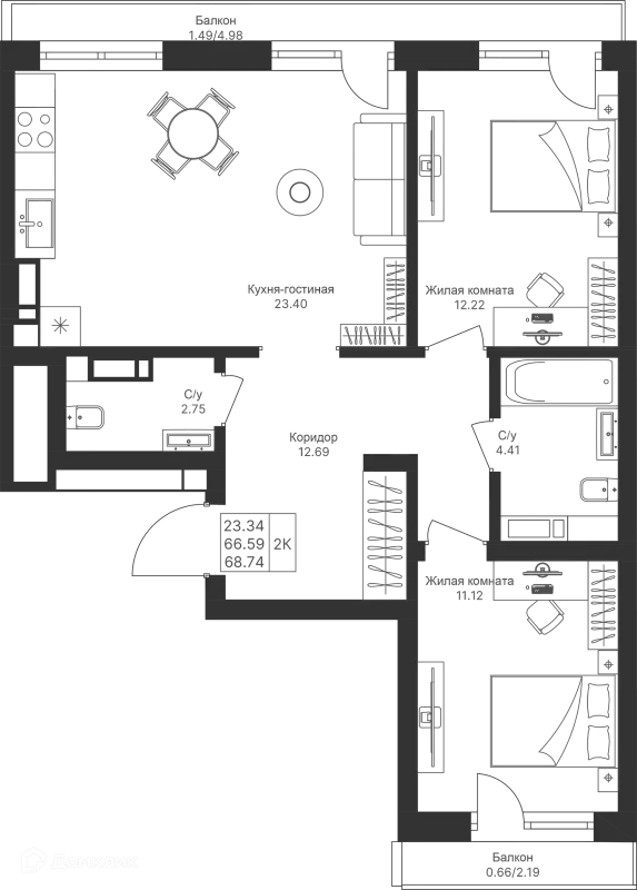 2 комн. квартира в Казане в ипотеку от 104 831 руб/месяц