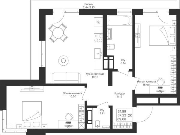 2 комн. квартира в Казане в ипотеку от 102 414 руб/месяц