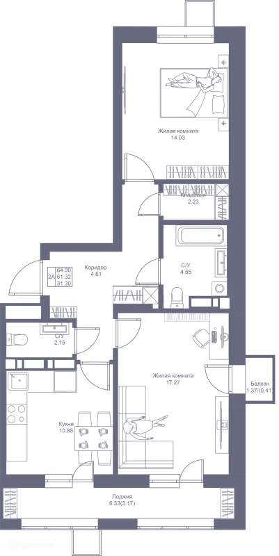 Студия квартира в Казане в ипотеку от 64 439 руб/месяц