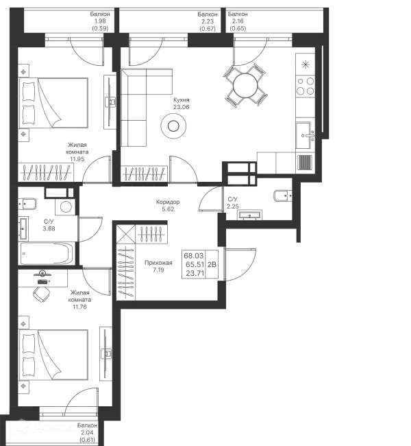 2 комн. квартира в Казане в ипотеку от 103 998 руб/месяц