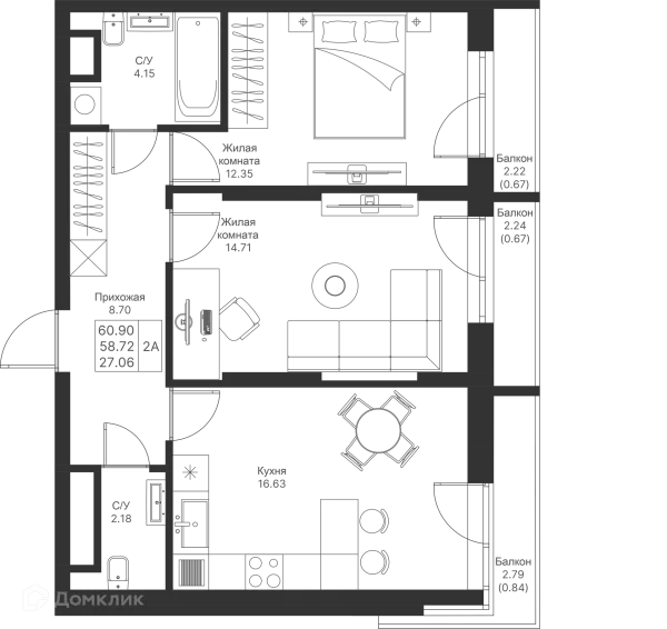 2 комн. квартира в Казане в ипотеку от 98 586 руб/месяц