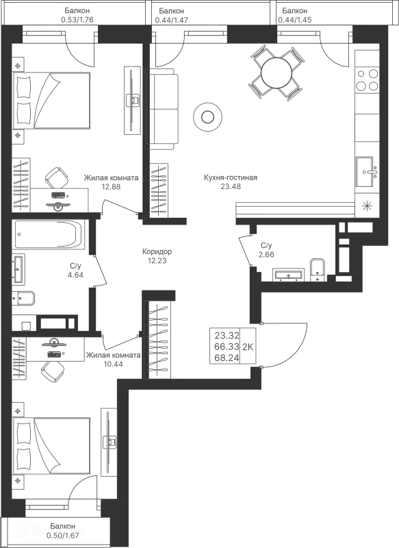 2 комн. квартира в Казане в ипотеку от 105 248 руб/месяц